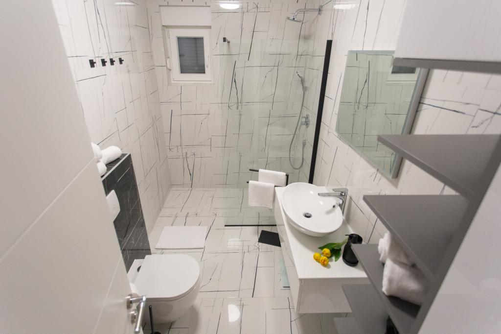 A lakás kényelmes, hangulatos, nagyon modern belsővel, nagyon magas szintű fogadói kiszolgálással: minőségi bútorok, gépek és eszközök, kényelmes ágyak nagyon jó minőségű ágyneművel és párnákkal, diszkrét világítás..... Saját magunk készítettük el az ételeinket, a reggelit, az ebédet és a vacsorát az apartmanban és az erkélyen fogyasztottuk el. Az aprólékosan berendezett, nagy erkélyről gyönyörű kilátás nyílik a tengerre. A nagyon kényelmes kanapé az erkélyen ülve és fekve arra csábít, hogy feküdjön le rá, és ne mozduljon... beszívja a tiszta tengeri levegőt, és hallgatja a madarak csiripelését a lakással szembeni ligetben... zöldövezet az egész utca mentén tele van olajfákkal, babérral, lucfenyővel, ciprusszal és más mediterrán növényekkel. Tiszta bejárat, márvány lépcsőház... Ugyanebben az utcában (a tenger mellett) található egy cukrászda terasszal, finom fagylaltokkal és csészékkel, és kicsit lejjebb a főutcán egy bisztró terasszal a tengeri sziklán, kiváló kávéval és koktélokkal. A tenger mellett van egy pár kilométeres sétány, amit reggel és a lenyűgöző naplementekor maximálisan kihasználtunk. Nemrég kezdődött az úszásszezon, megelégedtünk azzal, hogy a kis homokos öbölben mártogattuk a lábunkat. A tenger csodálatosan kék, tiszta, tiszta. A strand a sétány teljes részén húzódik. ha a zöldövezet közelében nem lehet tartózkodni, akkor napernyő szükséges. Egész idő alatt, amíg a lakásban voltunk, nagyon-nagyon jól éreztük magunkat...,,egyértelműen "pozitív energiát" bocsát ki. Ajánljuk!!!!!