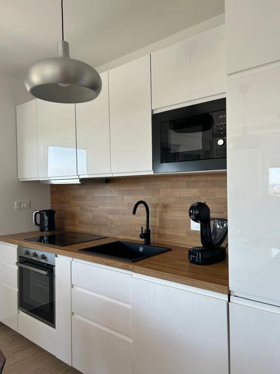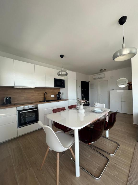 A lakás új, kényelmesen felszerelt, tágas, tökéletes egy nyaraláshoz, mindössze 100 méterre a strandtól. A konyhában kávéfőző, vízforraló, mikrohullámú sütő, sütő, mosogatógép, nagyméretű műholdas TV és mosógép található. Az utca rendezett és csendes. A tenger tiszta és meleg. Tökéletes egy nyaraláshoz. Javasoljuk.