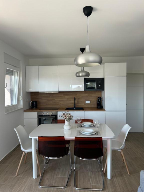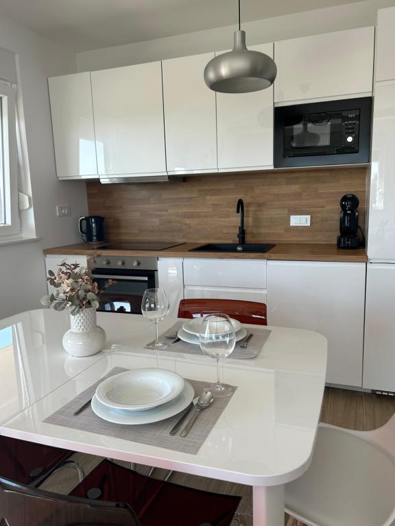 Felújított lakás, teljesen felszerelt konyha gépekkel. Légkondicionált helyiség. Két nagy hálószoba két nagyon kényelmes ággyal, kényelmes matracokkal és párnákkal. Egy nagy terasz, ahonnan élvezheti a tengerre néző kilátást, a legszebb reggel kávézáshoz és este a fürdés utáni pihenéshez. Tágas nappali, nagyméretű TV műholdas vétellel. A strand és a tenger tényleg közel van. Mindenkinek ajánlott.