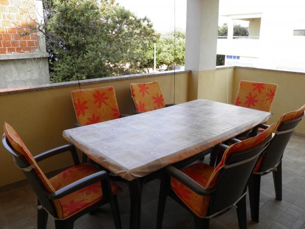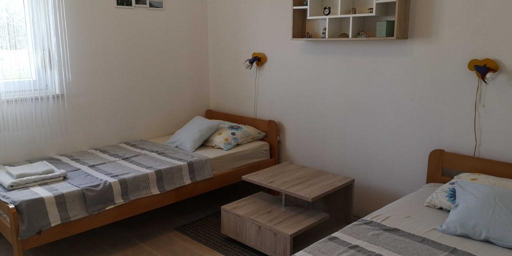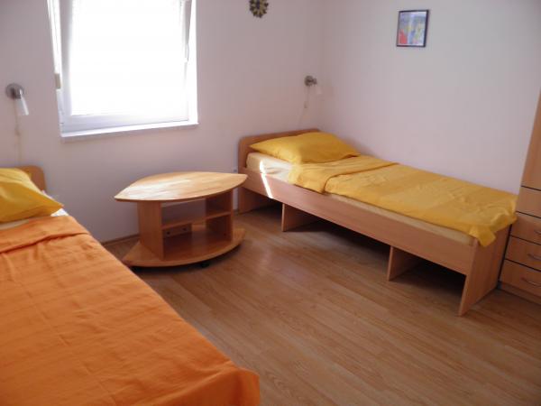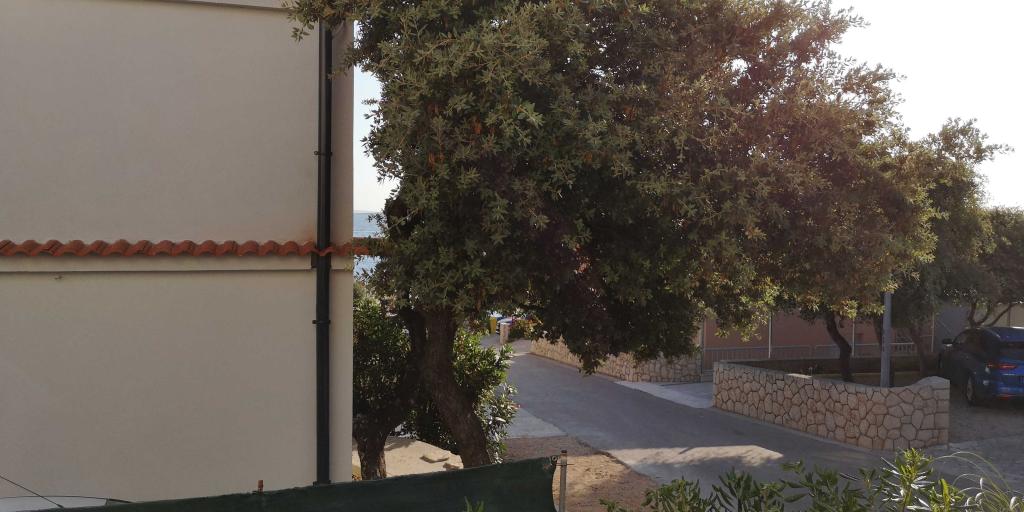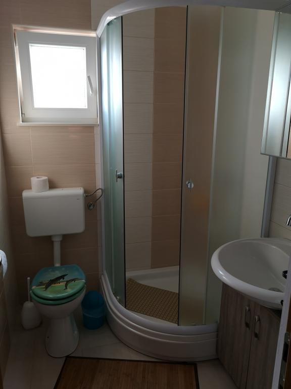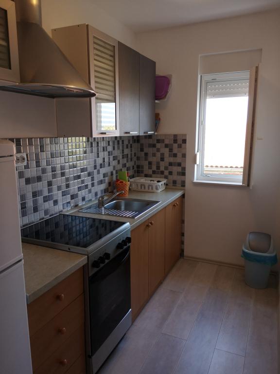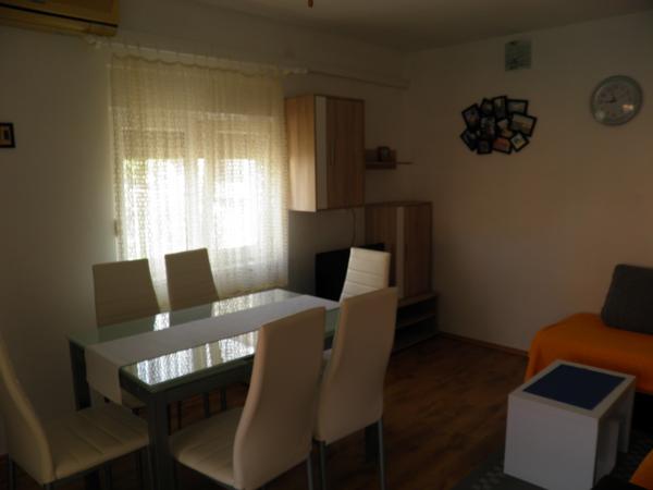 Gyönyörűen és korszerűen berendezett apartman a földszinten és az emeleten, 50 m-re a tengertől, alkalmas gyermekes családok számára. Az apartmanban két hálószoba, egy nappali, egy teljesen felszerelt konyha, egy fürdőszoba és egy terasz található. A légkondicionálás és a vezeték nélküli internet benne van az árban. A ház mögött parkolóhely biztosított. Az udvaron grillezési lehetőség, napközbeni hűsölésre alkalmas szabadtéri zuhanyzó található. A strand 50 m-re van, van egy köves és egy kavicsos rész, amely kisebb gyerekeknek is alkalmas.
