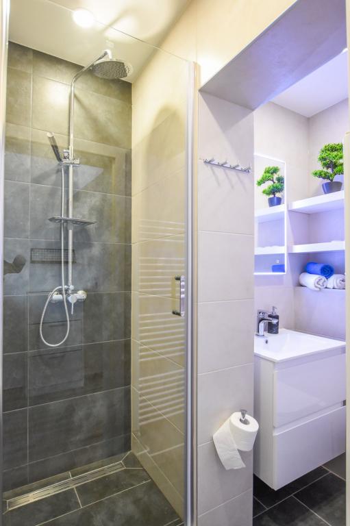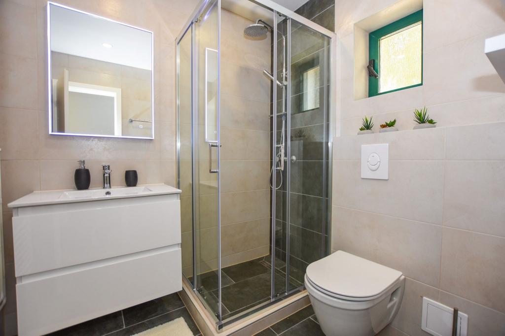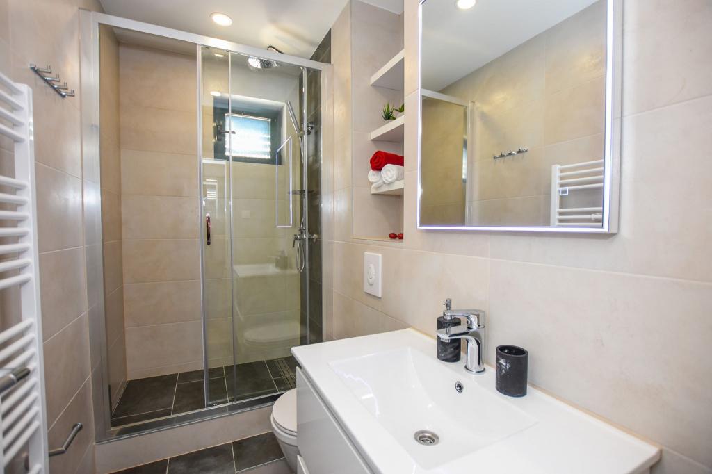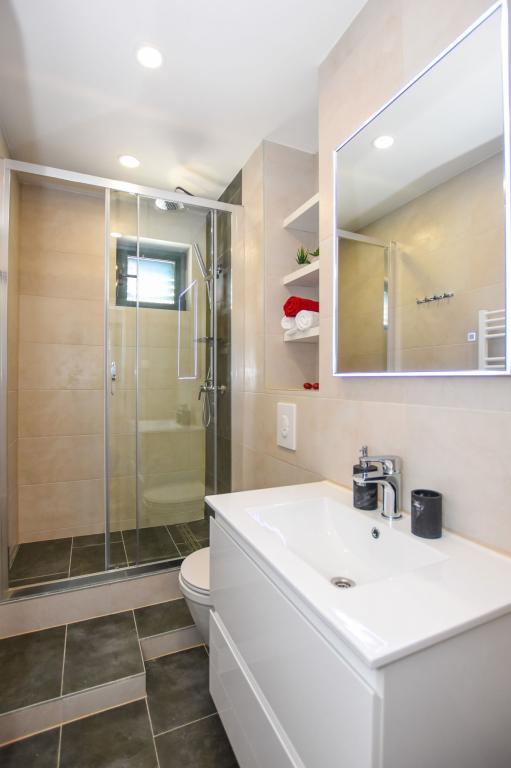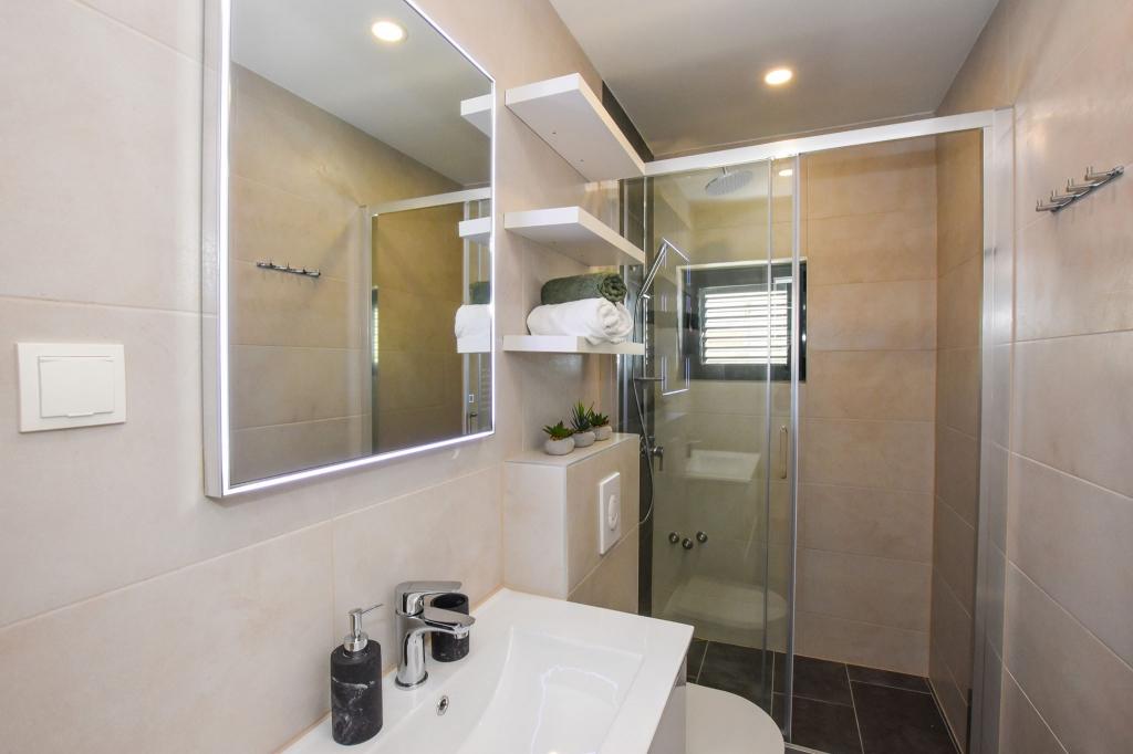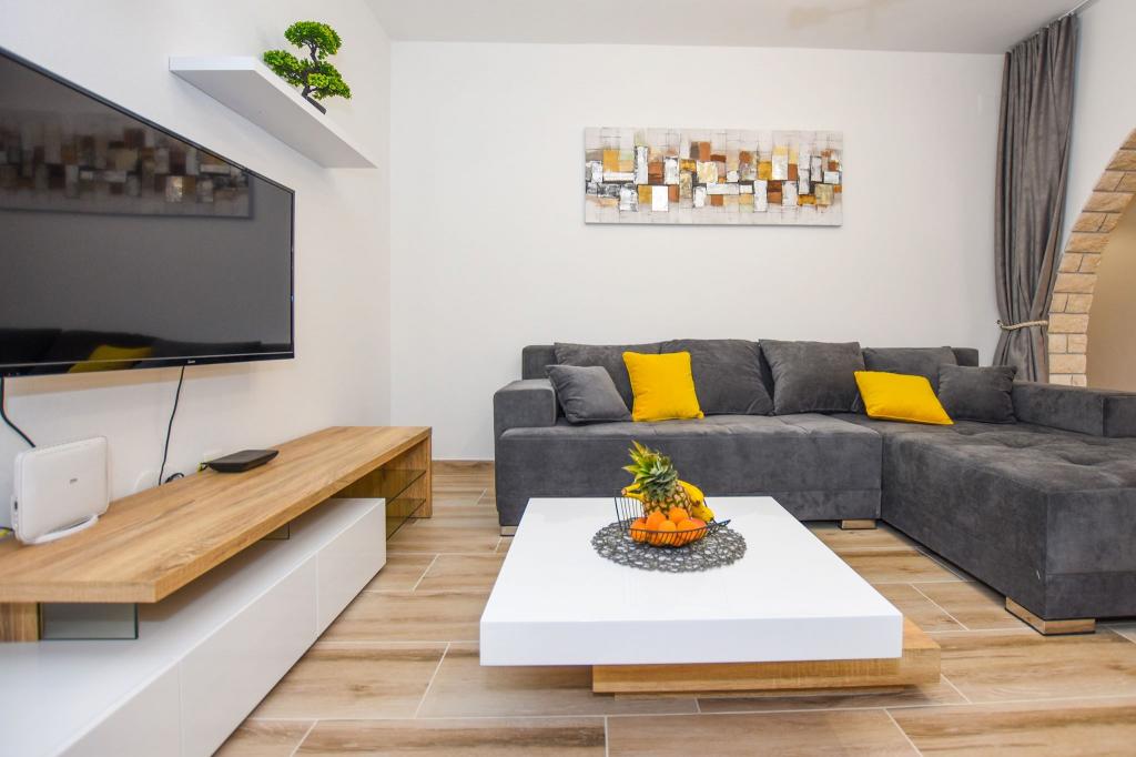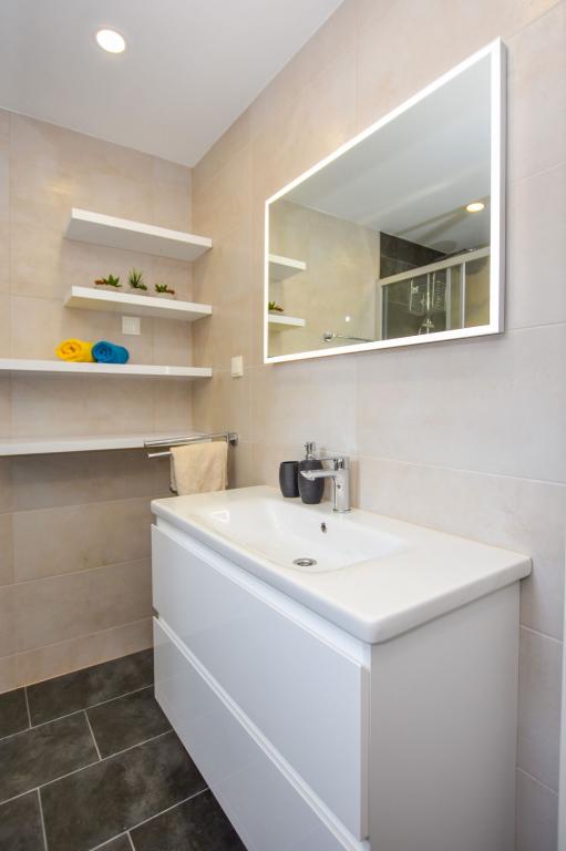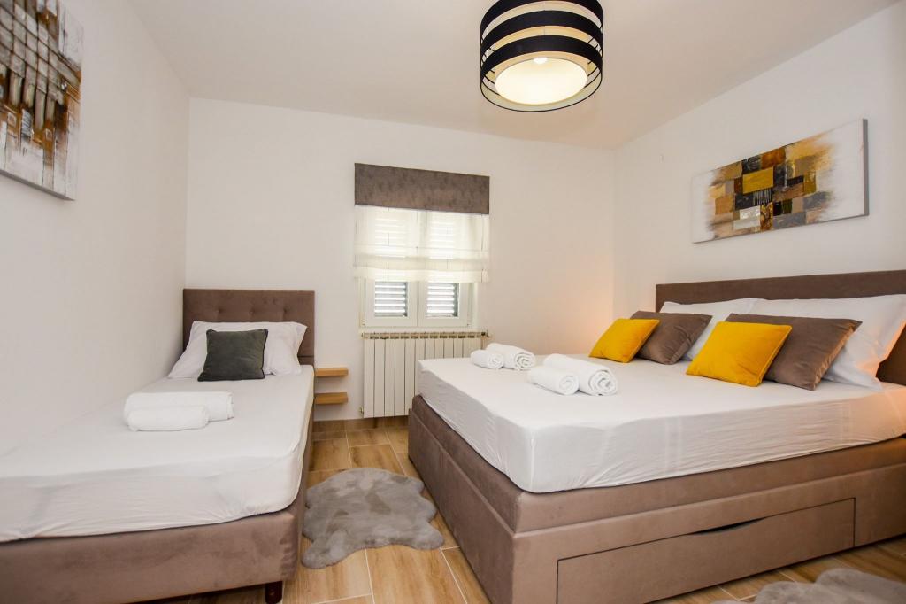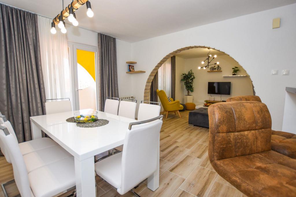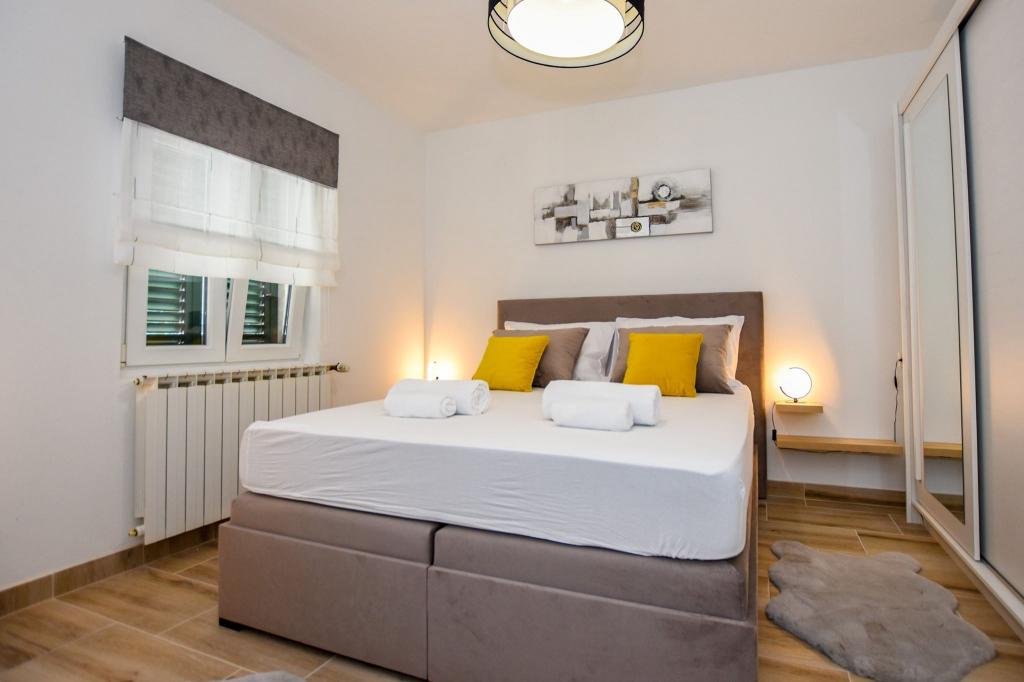 6 ÚJ KORSZERŰ DÍSZÍTÉSŰ apartman, minden egység légkondicionálóval, saját zuhanyzós fürdőszobával és konyhával mosogatógéppel, hűtőszekrénnyel, kenyérpirítóval és vízforralóval, valamint egy közös helyiség mosáshoz, szárításhoz és vasaláshoz, ingyenes Wi-Fi, LED TV, kávéfőző , gyermekágy. Ingyenes privát parkoló 50 méteren belül. Néhány lakóegységhez terasz is tartozik. 20 méteres körzetben gyönyörű strandok, kávézók, játszótér, éttermek, üzletek és játszószoba található.