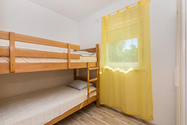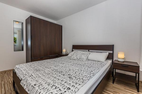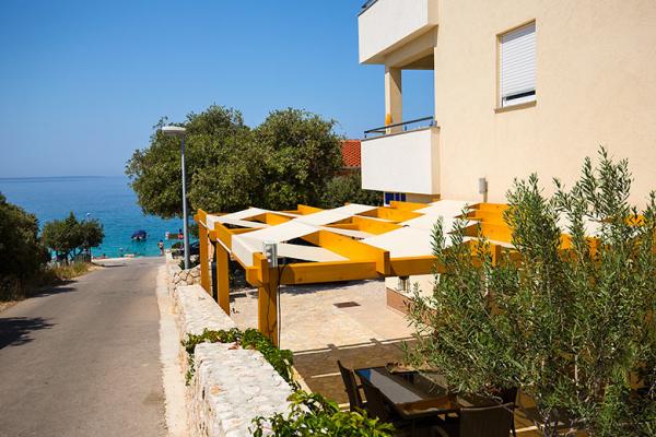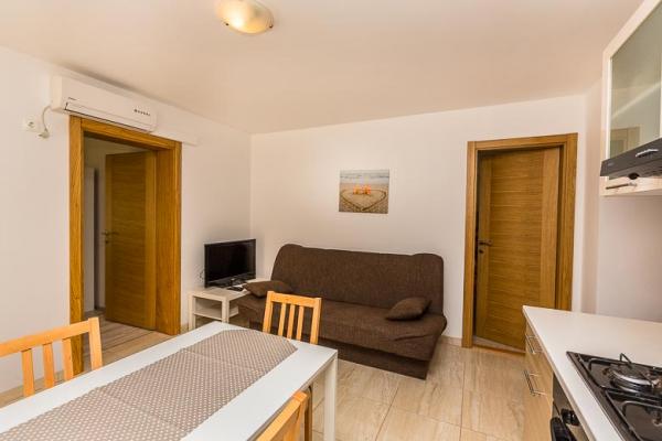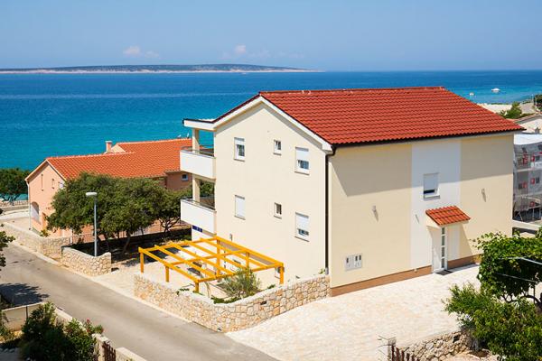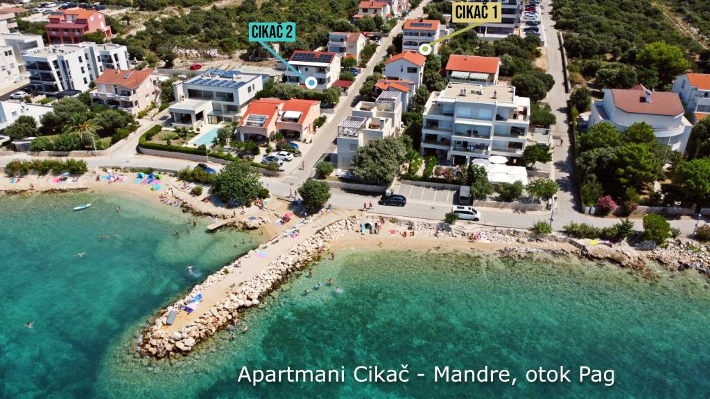 Az új építésű és modern berendezésű apartmanok Mandrében, a tengertől második sorban találhatók. Az apartmanok légkondicionálóval, valamint földi és műholdas vétellel rendelkező LCD LED TV-vel felszereltek. A konyhák sütővel, mikrohullámú sütővel, mosogatógéppel, páraelszívóval ellátott gáztűzhellyel és hűtővel fagyasztóval felszereltek. Minden apartmanhoz nagy, tengerre néző terasz tartozik, amelyek vizuálisan elkülönülnek a többi apartman teraszától, így maximális kényelmet biztosít. Minden emeleten egy 2+2-es és egy 4+1-es lakás található. A 2+2 lakások egymás felett helyezkednek el, és azonos alaprajzúak, és ugyanez vonatkozik a 4+1 lakásokra is. A parkoló és a ház bejárata a ház hátsó részén található. A földszinten, az út mellett található egy 4 fős apartman két hálószobával, kültéri terasszal és saját parkolóval.