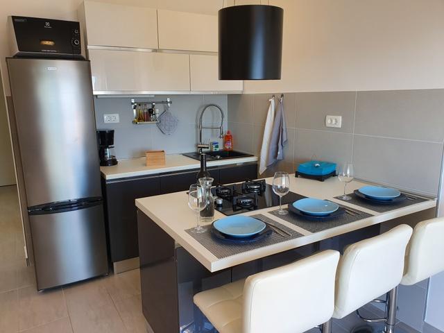Nagyszerű, tulajdonosok. Mega felszerelt lakás minden kényelemmel. Teljesen felszerelt konyha. Szó szerint 20 méterre a tengertől, gyönyörű környezet és a kilátás a teraszról, csodálatos. ajánlom!
