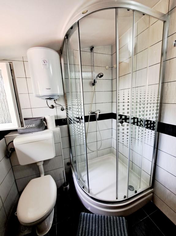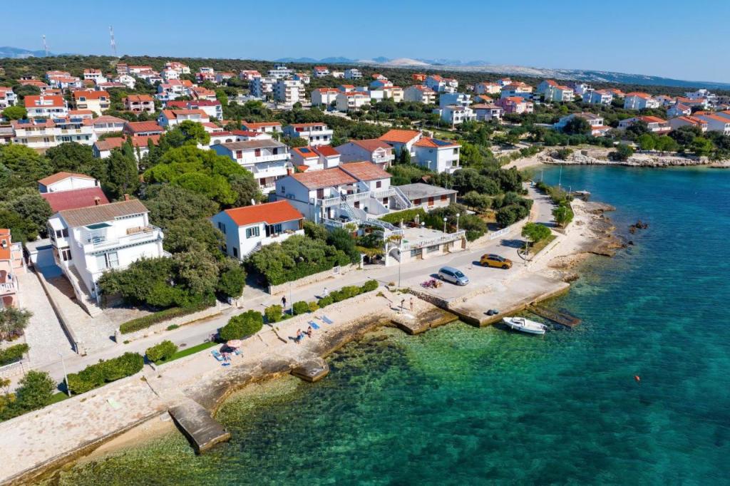 Mandre, egy turisztikai és halászfalu Pag szigetén, a sziget déli oldalán található, gyönyörű kilátással Silba és Olib szigeteire, valamint Maun és Škrda szigeteire, amelyek bővelkednek öblökben és gyönyörű strandokban. Házunk az első sorban található a tengertől, egy köves és kavicsos strand mellett, csak ki kell lépnie az udvarból, át kell kelnie a parton, és máris úszik a kristálytiszta tengerben! Az apartmanok teljesen felszereltek, tágas, természetes árnyékot adó udvar veszi körül. Ingyenes parkolás közvetlenül az apartman előtt található. Ez egy nagyszerű hely gyermekes családok és a természet szerelmeseinek. Mandre tagolt tengerparttal, 3 kilométer hosszú sétánnyal és kavicsos strandokkal rendelkezik, 14 km-re található Novaljától és Zrćétől, 16 km-re Pag városától és mintegy 60 km-re Zadar történelmi városától. Gyönyörű naplementével, a só illatával és a tenger hangjával jöjjön el és élvezze a helyünket. A tágas udvaron kerékpárok és SUP deszkák tárolására is lehetőség van evezéshez.