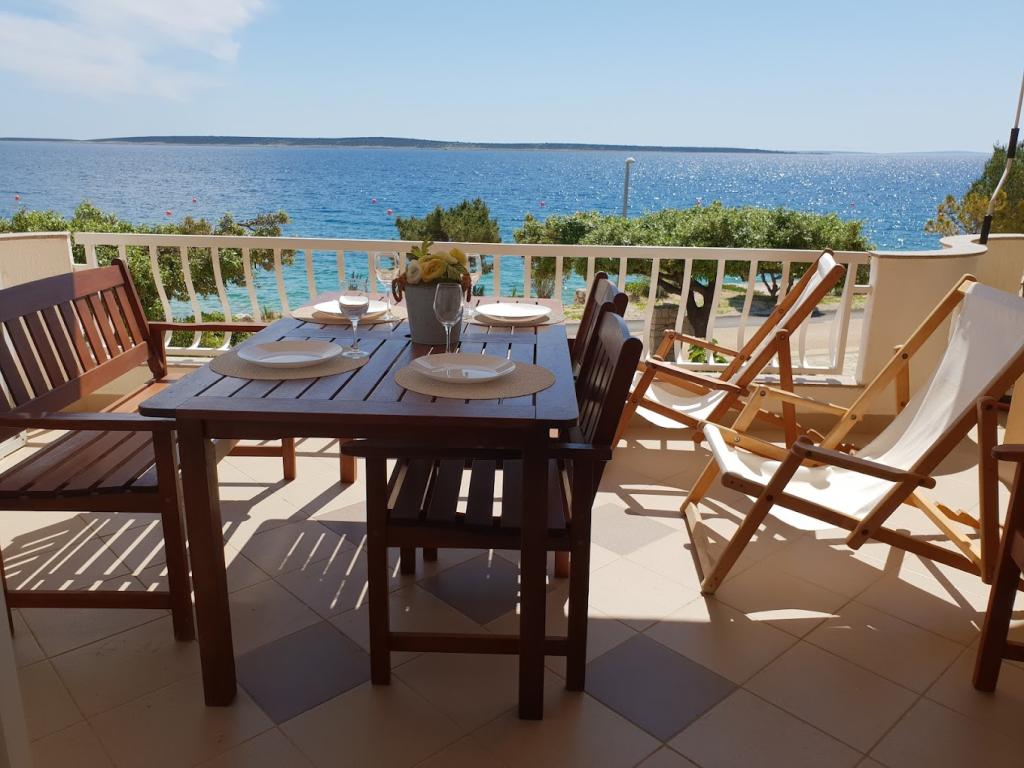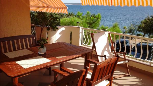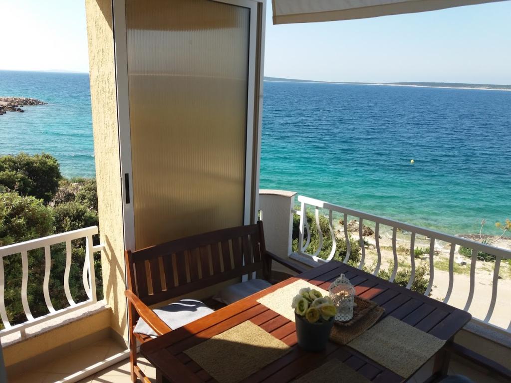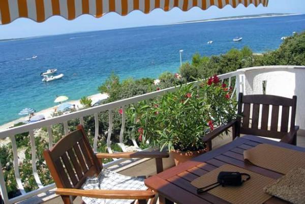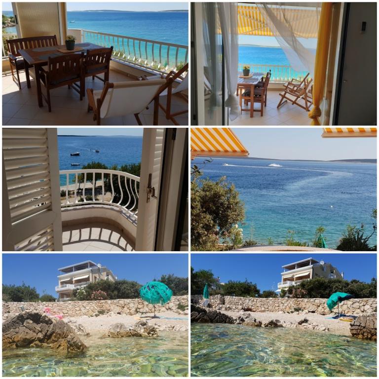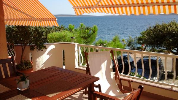 Ház 10 méterre a tengertől, a ház előtt strand. Minden apartman 45 m2, terasz 12 m2, erkély 4 m2, mindegyik közvetlen kilátással a tengerre és a szigetekre. Parkolás biztosított, grillező az udvarban, ivóvíz kiváló. A tenger tiszta, a strandok gyönyörűen rendezettek. Mandre elkötelezett a családi turizmus iránt.