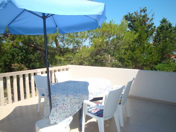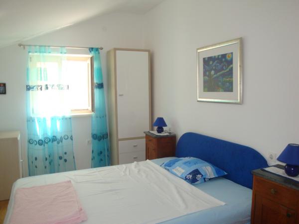 A Plava Laguna apartman Pag város legcsendesebb részén található, közel a városi strandhoz (2 perc a városi strandhoz), a gyógyiszaphoz és a városközponthoz (8 perc). Az udvar nagyon tágas, így a vendégek élvezhetik a tengerre néző kilátást és sétálhatnak. A házban két külön bejáratú apartman található, mindegyik külön emeleten. Az apartmanok terasszal és erkéllyel rendelkeznek, és jól felszereltek. Gépjárművei számára parkolóhely biztosított. A felső apartmanban (4+2) két tágas kertre néző hálószoba és erkély, tengerre néző nappali, tágas fürdőszoba és egy 20m2-es teraszra nyíló étkezős konyha található. Az apartman légkondicionálóval, mosógéppel és mosogatógéppel felszerelt. Az apartman külön bejárattal rendelkezik, és Ön egyedüli vendégként élvezheti a házban. A házigazdák az alsó lakásban laknak, és az Ön szolgálatában állnak. Lakásunkban kényelmesen és zavartalanul fogja érezni magát, akárcsak otthon.