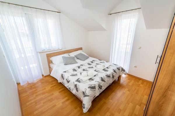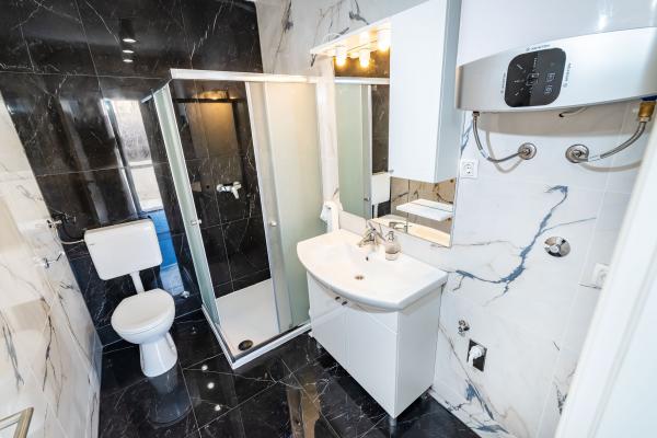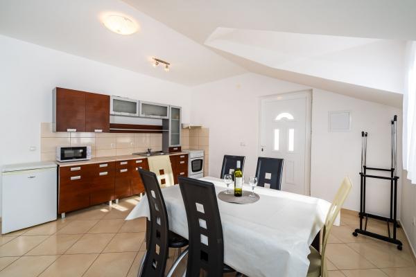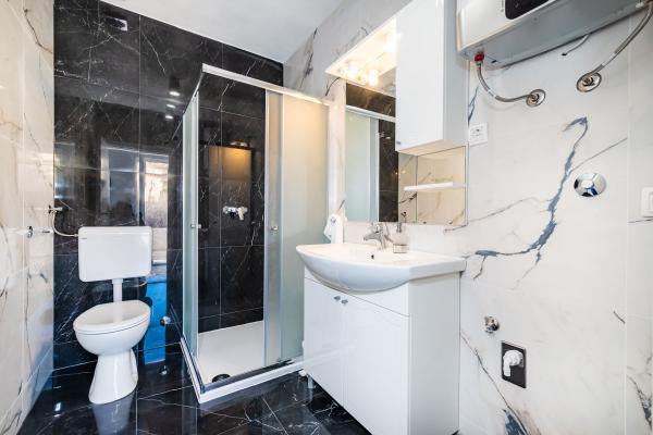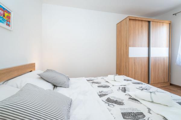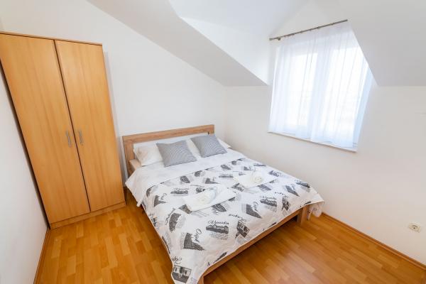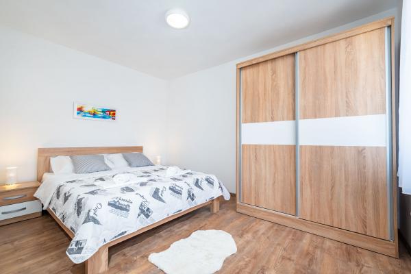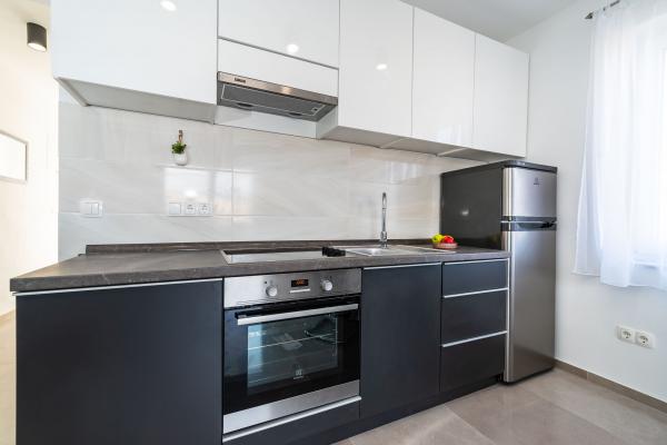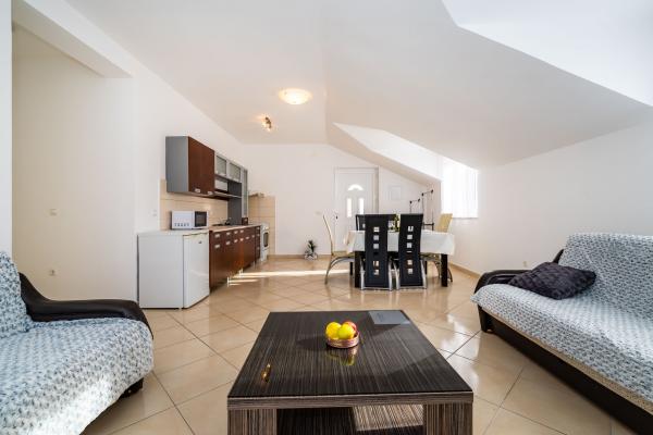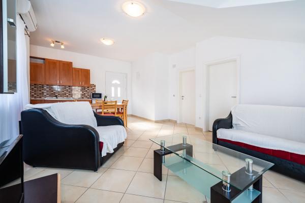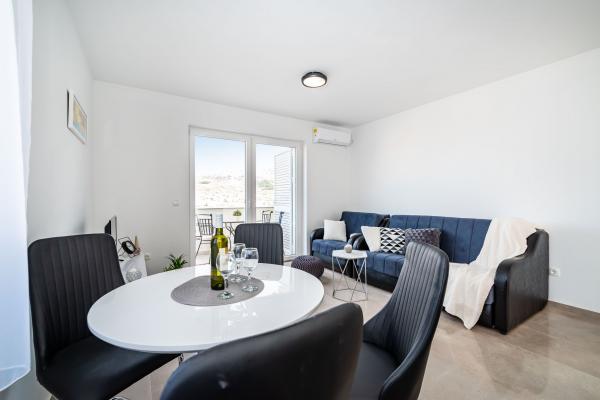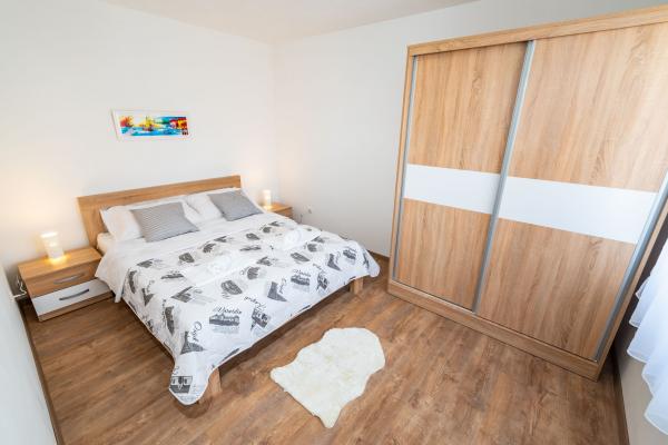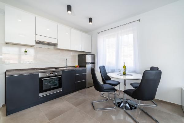 Kiváló apartmanok gyönyörű helyen, kilátással a tengerre és a városra. Teljesen felszerelt minden szükséges tartalommal, parkoló autóknak, wi-fi, minden, ami a kellemes nyaraláshoz kell. 7 perc a strand, 10 perc a városközpont és éttermek. A legközelebbi bolt 5 perc sétával elérhető, gyalog 10 perc alatt minden elérhető. Az 1-6 apartmanok egy épületben találhatók, és teljesen egyformák. Három apartman található a földszinten (1-3), nagy terasszal. Az első emeleten három apartman található. Mindegyikből a tengerre nyílik kilátás. A 7-es és 8-as apartmanok a második épület 1. emeletén találhatók, amely közvetlenül az első épület mellett található. Minden apartman modern berendezésű és a vendégek rendelkezésére áll minden, amire szüksége van, beleértve a mikrohullámú sütőt, hűtőszekrényt, wi-fit, vízforralót, edényeket, törölközőket... A társasági élethez egy grillező asztallal és székekkel rendelkezik.
