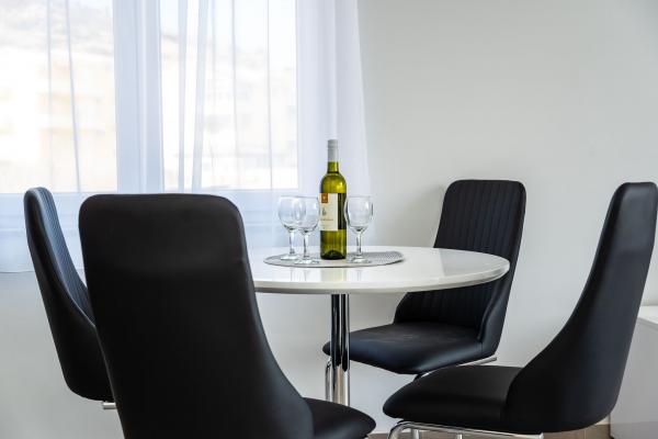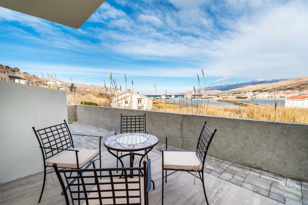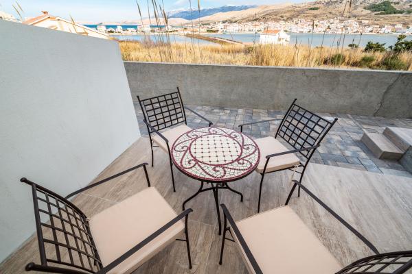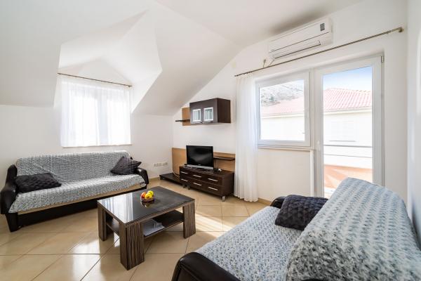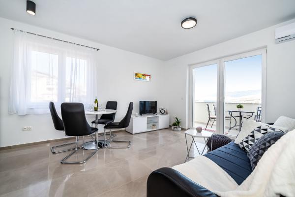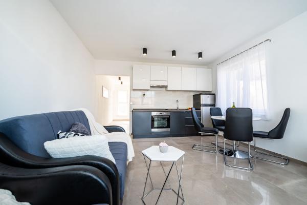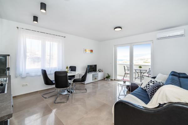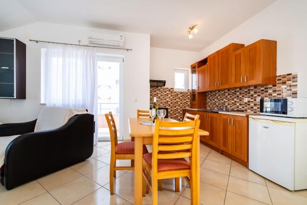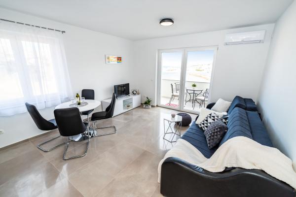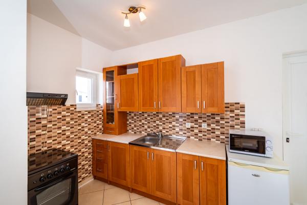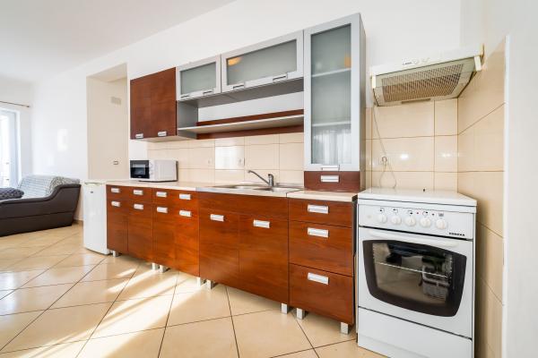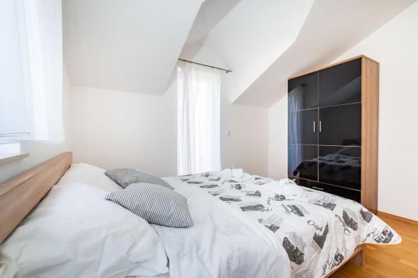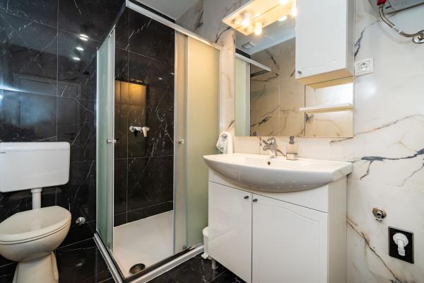 Kiváló apartmanok gyönyörű helyen, kilátással a tengerre és a városra. Teljesen felszerelt minden szükséges tartalommal, parkoló autóknak, wi-fi, minden, ami a kellemes nyaraláshoz kell. 7 perc a strand, 10 perc a városközpont és éttermek. A legközelebbi bolt 5 perc sétával elérhető, gyalog 10 perc alatt minden elérhető. Az 1-6 apartmanok egy épületben találhatók, és teljesen egyformák. Három apartman található a földszinten (1-3), nagy terasszal. Az első emeleten három apartman található. Mindegyikből a tengerre nyílik kilátás. A 7-es és 8-as apartmanok a második épület 1. emeletén találhatók, amely közvetlenül az első épület mellett található. Minden apartman modern berendezésű és a vendégek rendelkezésére áll minden, amire szüksége van, beleértve a mikrohullámú sütőt, hűtőszekrényt, wi-fit, vízforralót, edényeket, törölközőket... A társasági élethez egy grillező asztallal és székekkel rendelkezik.