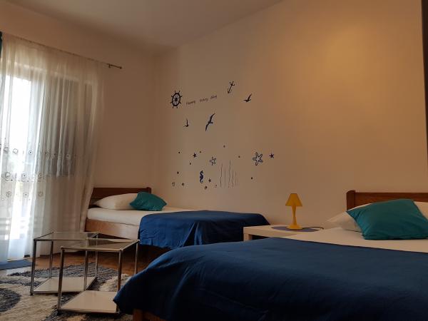 Az Apartments Luna szálláshelye a strandtól és a tengertől 20 méterre, a városközponttól pedig 5 perces sétára található. Hét újonnan felújított apartman és ingyenes parkolási lehetőség biztosított a zárt udvarban, amely minden apartman számára biztosított. A grillezés és a nagy udvar lehetőséget ad arra, hogy szocializálódjanak, és ha szükséges, készen állsz arra, hogy készítsen egy finom halat vagy húsételeket. Az ingatlant körülvevő udvar a strand törölközőinek biztonságos tárolására alkalmas. Örömömre szolgál, hogy bemutatom magam, mint a Luna Apartman házigazda. 40 éves családunk vagyunk, amely családtagjainkkal együtt kellemes pihenést és 24 órás kiszolgálást biztosítunk vendégeinknek, mert elégedettségük öröm. A környék csendes és csendes, és tökéletes a gyermekes családokkal való tartózkodásra. Az üzletek, éttermek, a tengerparti sétány és a gyermekpark 50-100 méterre található. A Paška-öböl mindenféle sportra alkalmas a tengeren, míg az egész öbölben 23 kilométernyi gyönyörű homokos strand található.