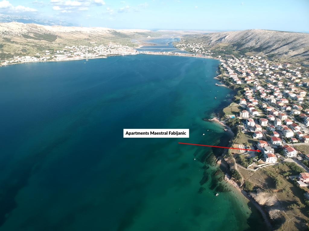 Apartmanok Maestral Fabijanić, az első sor a tenger felé, három stranddal 50-150 m-en belül Pag csendes részén található, körülbelül 2 km-re a városközponttól. Létesítményünkben (525m2-es kert és 1000m2-es parkoló) a szálláshely modern és jól felszerelt apartmanokból áll, melyek a maximális kényelmet és praktikum biztosítják. Minden apartman ízlésesen berendezett, kényelmes bútorokkal és számos kényelemmel rendelkezik, amelyek kellemes tartózkodást biztosítanak. Akár családdal, barátokkal vagy párban utazik, nálunk megtalálja a tökéletes apartmant, amely megfelel az Ön igényeinek. Apartmanjaink tágasak és olyan felszereltséggel rendelkeznek, mint a légkondicionálás, a műholdas programokkal ellátott LED TV ingyenes WIFI-vel (50 Mbit), teljesen felszerelt konyha és saját fürdőszoba. Az apartmanokhoz nagy terasz tartozik, ahonnan gyönyörű kilátás nyílik az Adriai-tengerre, Pag városára, a Velebit-hegyre, így Ön a hullámok nyugtató hangjára ébredhet, és saját erkélyéről vagy teraszáról élvezheti a festői naplementét. Várjuk érkezését!
