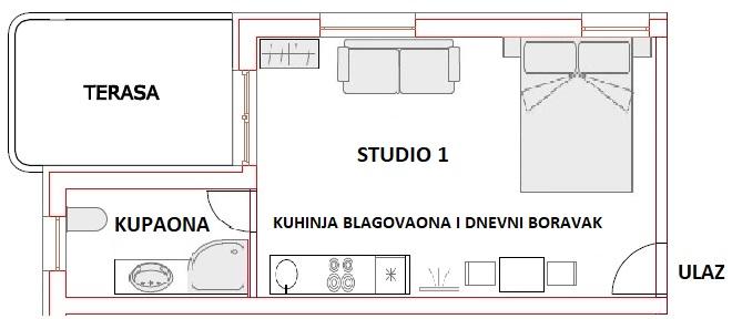 A stúdió tiszta és rendezett. A konyhában minden benne volt, amire szükségem volt. Nagyon kedves házigazdák. Közel van a tengerhez és Pag központjához, ahol este ki lehet menni. A stúdió állítólag 2 szobás, de ha valaki gyerekkel megy, az is gond nélkül foglalható. Nagyon ajánlom.