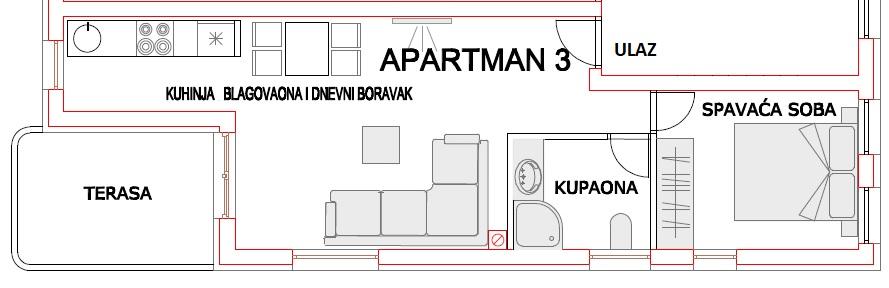 Három apartmant kínálunk, amelyek mindössze 3 perc sétára vannak Pag központjától és 6 perc sétára a strandtól. Mindhárom apartman újonnan és modern berendezéssel rendelkezik, az ár tartalmazza a légkondicionálást, a TV-t, SAT-t, wi-fi-t, felszerelt konyhát, hálószobát, fürdőszobát. Van egy franciaágy és egy kinyitható kanapé, és lehet kapni egy pótágyat. Parkolás biztosított, és grillezési lehetőség áll rendelkezésre.