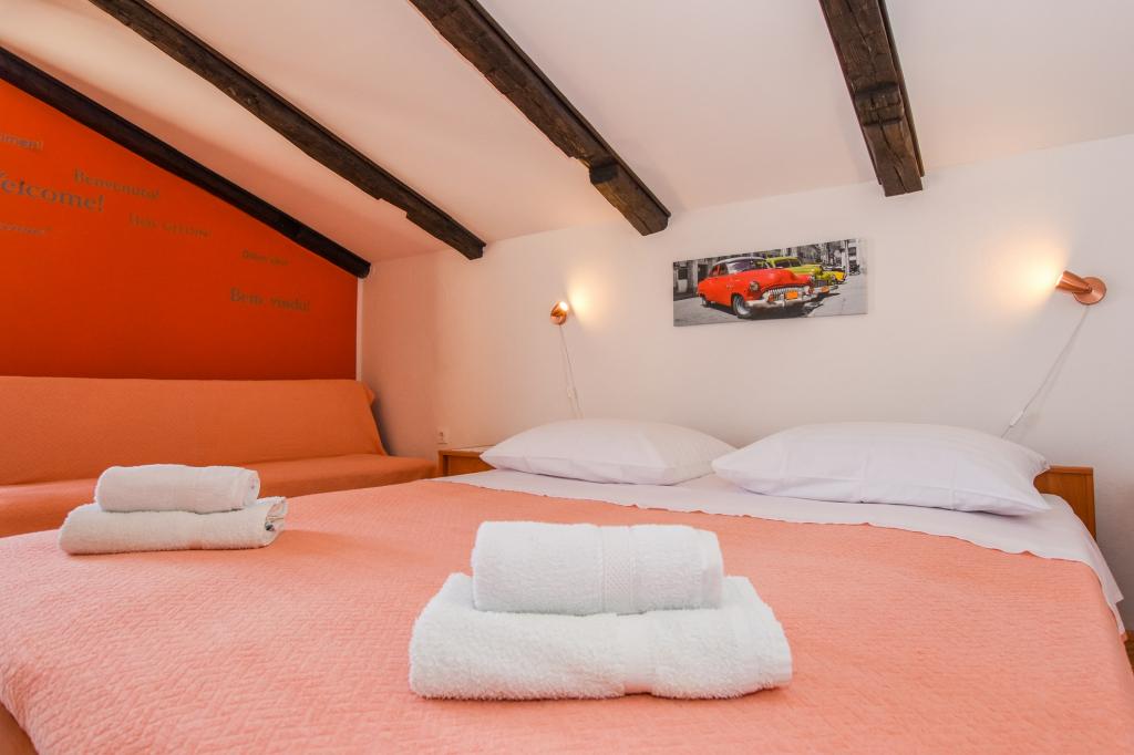 Nagyon kedves, barátságos, segítőkész tulajdonosok. Nagyon jó kapcsolatot. Szoba - tiszta, gondozott, tágas, jól felszerelt (hűtőszekrény, tűzhely, edények, evőeszközök, edények, hajszárító, napernyő a strandon, szívesen tiszta illatú ágyneműt és törölközőt). Gyönyörű kilátás a terasz és erkély. Garantált parkolóhelyet körülbelül 100 méterre a kis strand a ház közelében. Szép, hangulatos város. Ez a terület sok helyen felfedezni. Mi is és a gyerekek nagyon boldogok voltak, és örömmel Horvátországban. Ajánljuk!