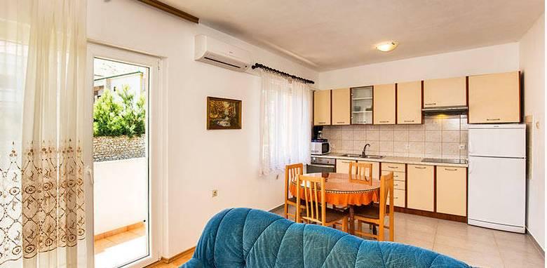 Erősen ajánlott, nagyon jó körülmények az apartmanokban, a házigazdáknak nem jelent problémát. Nagy, tágas, tiszta és rendezett lakások. Csendes és nyugodt környezet, pékség és zöldséges a közelben. 15 perc sétára a központtól. Egy félreeső strand saját bejárattal. Az egyik legjobb vakációnk!