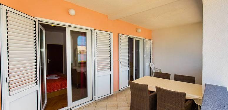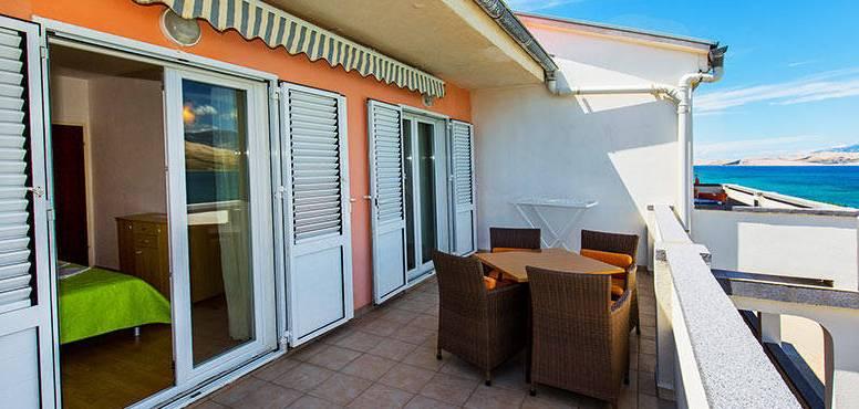 Nagyon nagy, tágas, kényelmes apartman, közvetlen hozzáféréssel a tengerhez !! Két terasz. Napozóágyak, napernyők, légkondicionálás, nagy parkoló, grill, pékség és zöldséges a sarkon. MENŐ!!