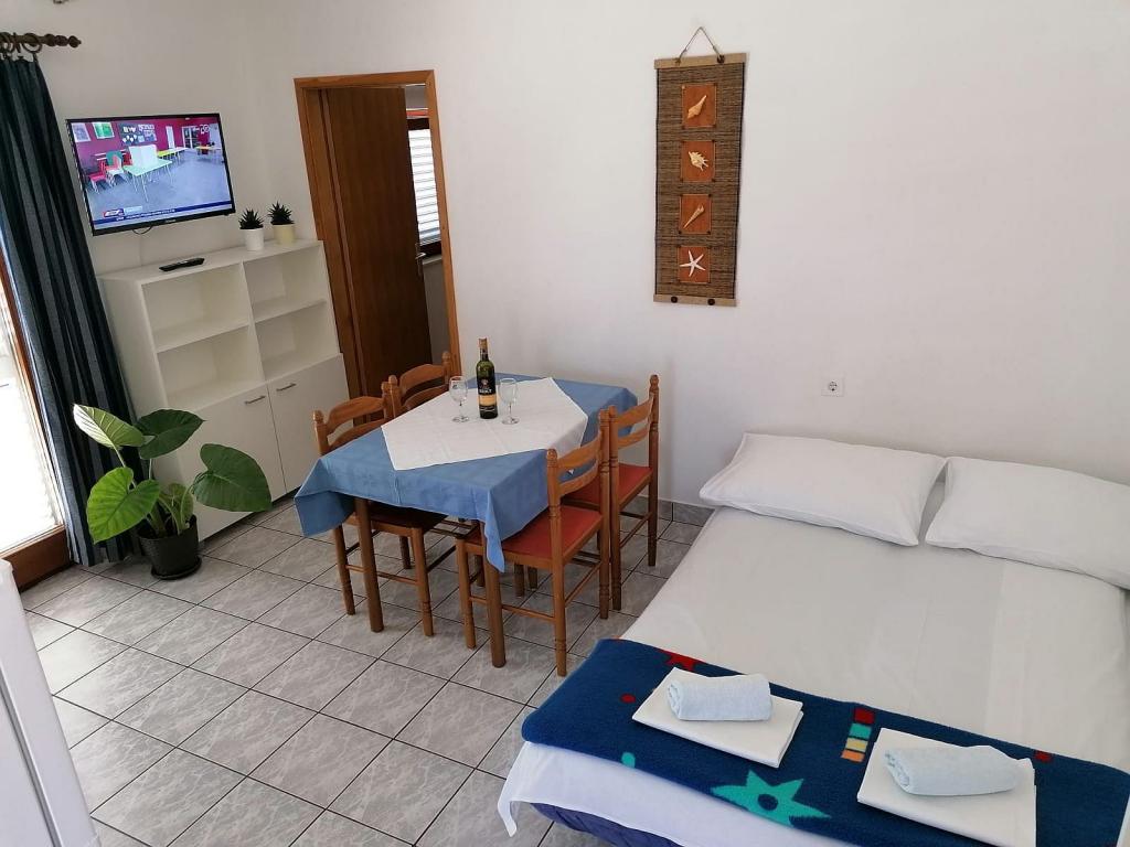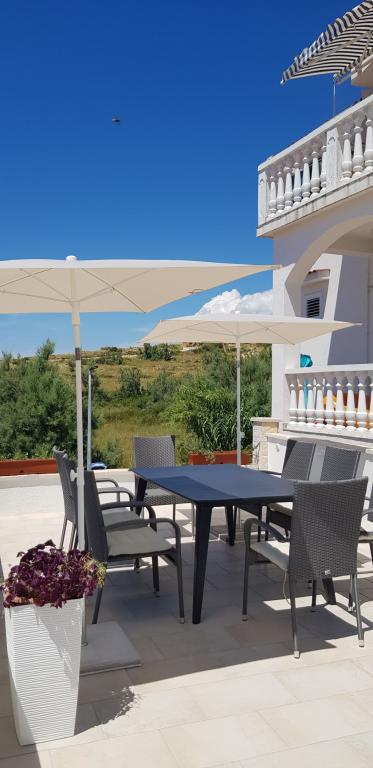 Az apartmanok Pag városában, Bašaca üdülőhelyén, a strandtól 100 m-re találhatóak. Az apartmanok biztonságos parkolással, az éghajlat ingyenes használatával és ingyenes Wi-Fi hozzáféréssel rendelkeznek. Öt apartmanunk A3 1, ahol 2-4 fő részére kínálunk szállást. Az apartmanban egy hálószoba 2 1 ágy, egy nappali kihúzható ággyal két fő részére és egy teljesen felszerelt konyha, egy zuhanyzós fürdőszoba és egy tengerre néző terasz. Minden apartman teljesen felszerelt: tv, légkondicionáló, hűtőszekrény, grill, ágynemű, törölköző, evőeszköz.