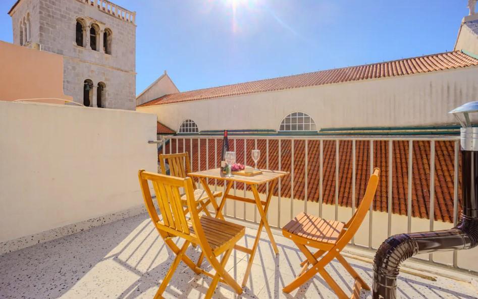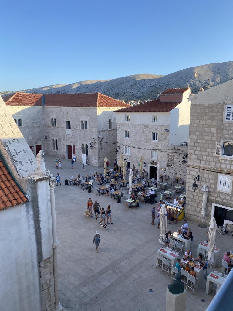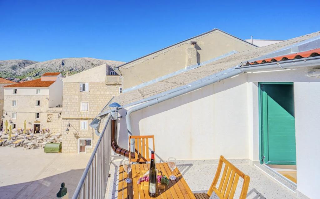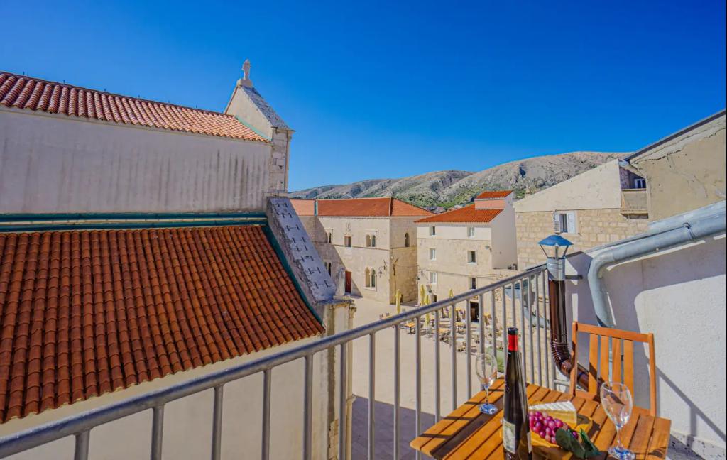 Pag központjában található, a város főterére néző nyaralóház. 4 fő részére. Felszereltség: mikrohullámú sütő, okostévé, légkondicionáló, vízforraló, kenyérpirító, hűtőszekrény, mosógép, terasz napernyővel. 50 méteres körzetben minden szolgáltatás megtalálható: éttermek, pékség (10 m), üzlet, gyógyszertár, kávézók, ajándékboltok, parkoló, templom, buszpályaudvar (300 m). Ingyenes parkolás és saját parkolóhely. A város fő strandja 250 méterre található a háztól. A Pagus Hotel strandja is a közelben található. Kilátás a templomra és a rektori palotára.