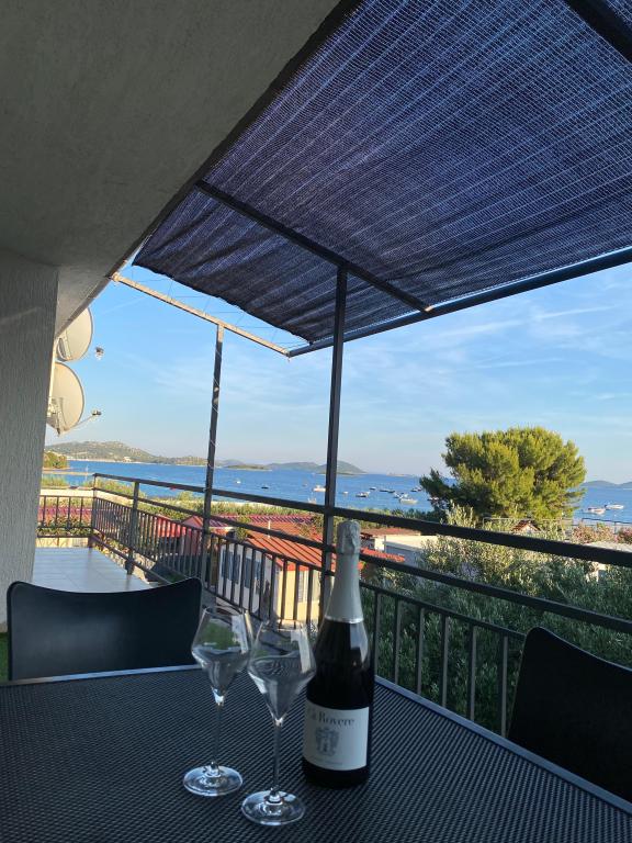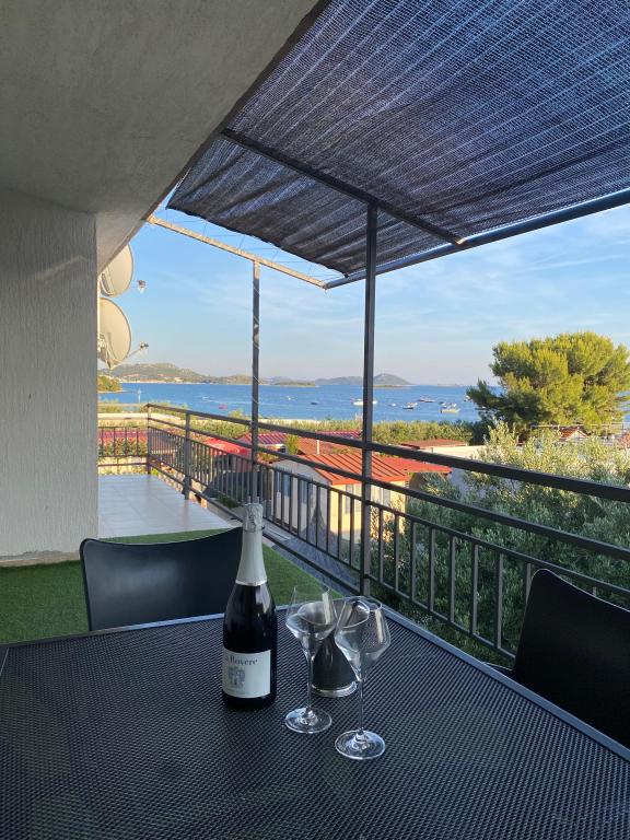 Újonnan berendezett apartman a tengerparton, nem messze a városközponttól, gyönyörű terasszal, kilátással a közeli szigetekre. Közvetlen közelében strandbár, pizzéria és gyorsétterem. Légkondicionálás, wi-fi, TV, mosogatógép és mosógép csak néhány dolog, amit az apartman kínál. Két szoba franciaággyal, tágas nappali és modern konyha szigettel.