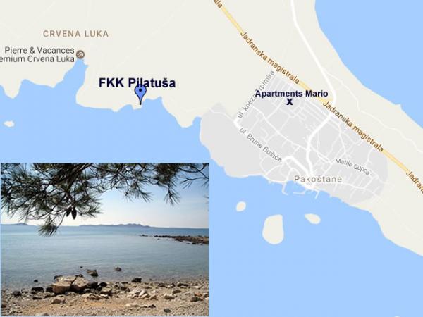 Az Apartment Mario egy családi házban található, zöldövezetben. Az apartmanok a tengerre néznek, így a teraszról csodálatos kilátás nyílik Kornatira. Ideális elhelyezkedésüknek köszönhetően 900 méterre vannak a tengertől és a Vrana-tótól, ami egyedülálló lehetőséget ad arra, hogy ugyanazon a napon úszhasson a tengerben vagy a tóban. Kiváló szállást kínálunk minden úszni tudó naturista vendégnek az FKK Pilatuša strandon. Nagy parkolót biztosítunk vendégeinknek, további szolgáltatásokkal: üdvözlőitallal, nagy grillezővel, további szabadtéri zuhanyzókkal, kisgyermekek számára alkalmas bekerített udvarral, stb. Minden kerékpáros vendégünk számára ideális kerékpárút áll rendelkezésre Vrana-tó. Mindössze 2,5 km-re található a Fun Park Mirnovec. , így minőségi szállást tudunk biztosítani Önnek, ha úgy dönt, hogy meglátogatja ezt a parkot