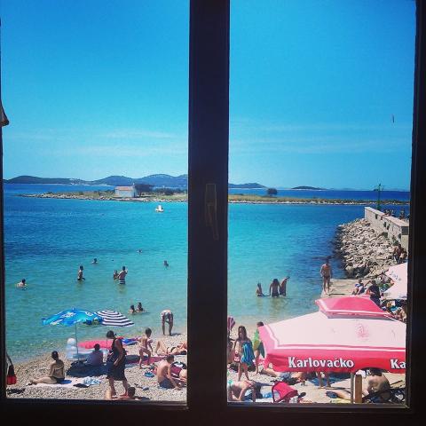 Az apartman Janica fő strandján található, első sor a tengerre, kilátással a tengerre és a Sv. Justina. A keze ügyében egy kis bisztró, ahol reggelizhet, miközben élvezheti a tengerre néző kilátást. Az apartmanban 2 hálószoba, 1 fürdőszoba, konyha és nappali pótággyal. A terasz asztallal élvezheti, miközben étkezik, és nézni a tenger, a strand. Az apartman az első emeleten található. Pakoštane-ban van egy halpiac, néhány bolt, pincészet, zöldség- és zöldségpiac, ajándékbolt, kajak, strandröplabda, vitorlázás, hajókirándulás a Kornati Nemzeti Parkba, gyermekek számára fenntartott vízi park, gyermekvonat. A helyszínen különböző strandok vannak, homokos, sziklás, sziklás és beton.