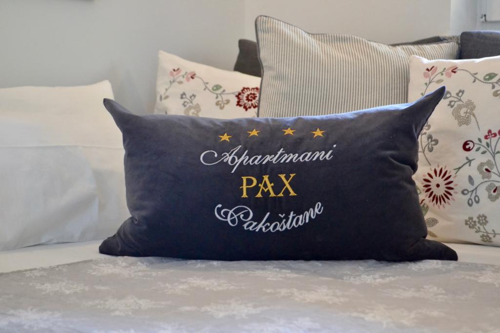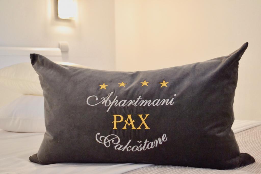 A PAX apartmanok Pakoštan csendes részén találhatók. A modern berendezésű 4 csillagos apartmanok az első emeleten találhatók, 68m²-esek (erkélyes) és 48m²-esek (terasszal), külön bejárattal. Tartalmaz egy hálószobát egy nagy franciaággyal, egy teljesen felszerelt konyhát, egy nappalit pótággyal és egy zuhanyzós fürdőszobát. Minden megvan, ami egy modern apartmanhoz szükséges ahhoz, hogy a vendég a legkényelmesebb tartózkodást biztosítsa benne. Ágyneművel, törölközővel, légkondicionálóval és széffel felszereltek. Az apartmanokban ingyenes vezeték nélküli internet, LCD TV és műholdas programok állnak rendelkezésre. Parkolás a ház udvarában található. Grillező is rendelkezésre áll. Az épülettől 5-10 perc sétára található a központ, bolt, bank, éttermek és egyéb vendéglátó és turisztikai létesítmények, valamint a strand. A Vrana Lake natúrpark, Horvátország legnagyobb természetes tava, 10 percre található. A házigazdák horvátul és németül beszélnek.