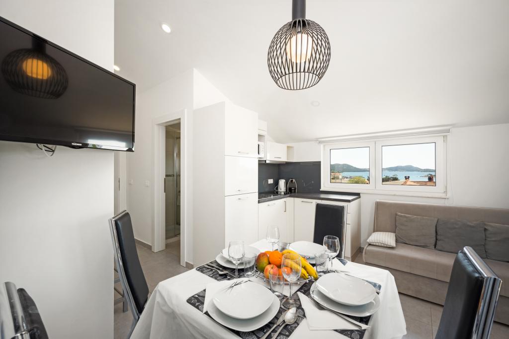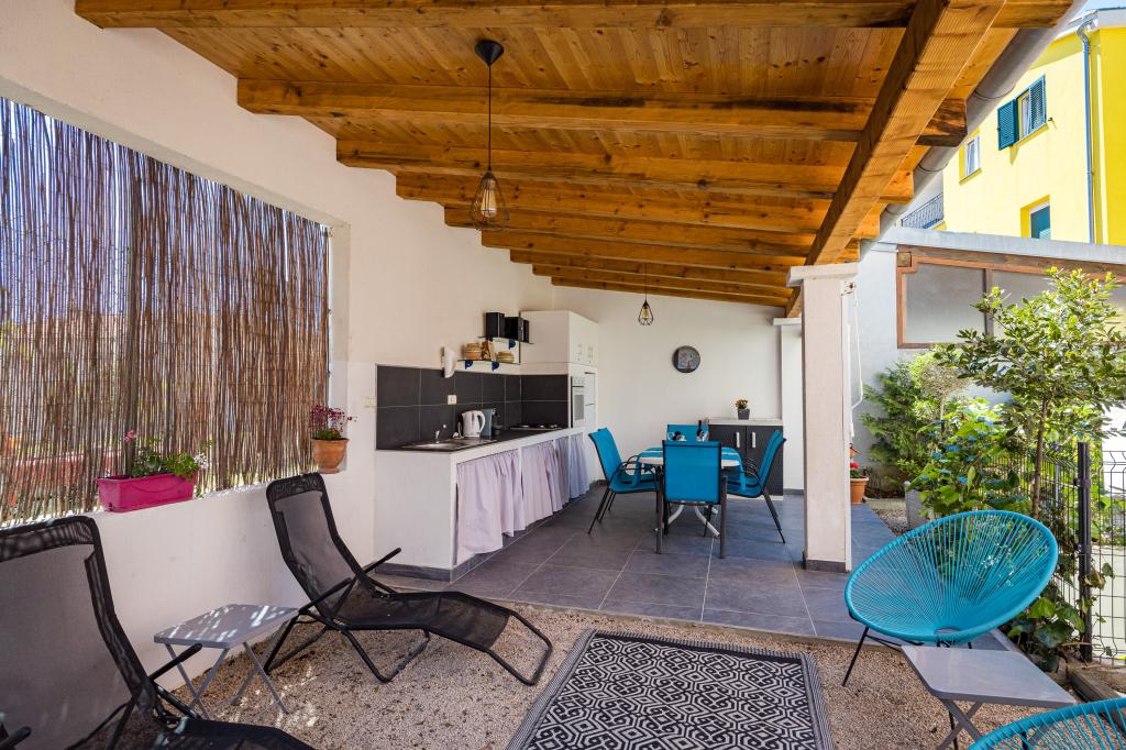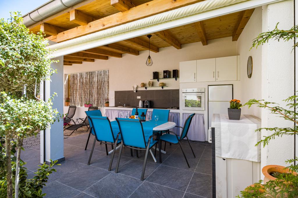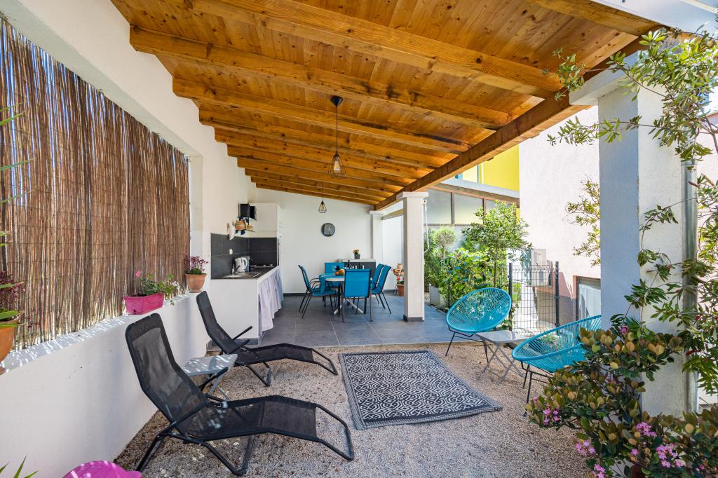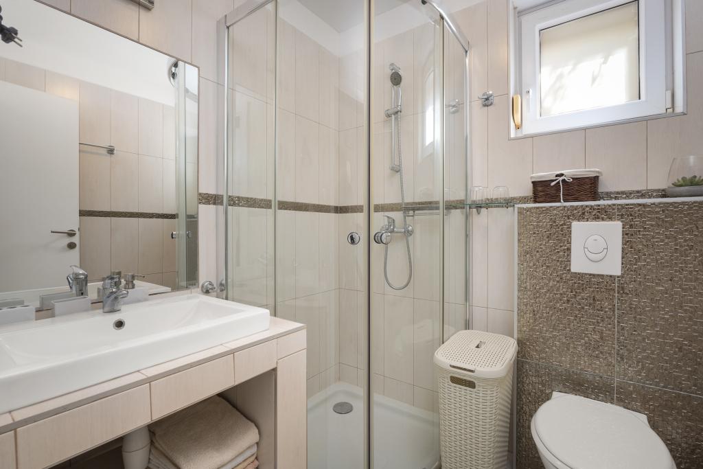 Pakoštane egy kis dalmát városka az Adriai-tenger partjának közepén, egyedülálló helyen, a gyönyörű tenger és a Vrana-tó között. Pakoštane-t négy nemzeti park (Kornati, Krka, Paklenica és Plitvicei-tavak) és két természetvédelmi park (Telašćica és Vrana-tó) veszi körül, amelyek egyedülálló szépségűek, valamint két nagyváros, Šibenik és Zadar veszi körül. A Bluemare Apartments ideális helyen, Pakoštanéban található, mindössze 50 méterre a strandtól. A ház közvetlen közelében üzletek, bank, éttermek, kávézók, pénzváltók és minden egyéb szükséges létesítmény található, amelyek élvezetesebbé teszik az itt-tartózkodást. A ház 2012-ben épült, és öt fényűzően berendezett apartmant tartalmaz. Minden apartman teljesen felszerelt és készen áll az érkezésre. Minden apartmanban található: felszerelt konyha minden főzéshez és étkezéshez szükséges eszközzel és eszközzel, kávéfőző, vízforraló, digitális televízió műholdas programokkal, légkondicionáló, széf, ingyenes internet, terasz, felszerelt fürdőszobák és hálószobák. Minden vendég rendelkezésére áll: parkoló, grillező, játszótér, nyári konyha sütővel, mosogatógéppel és minden főzőeszközzel. Kisállatait (kutyáit) is szívesen látjuk az apartmanokban. A Bronze apartman a földszinten található, és maximum 4 fő befogadására alkalmas. Egy hálószobából áll, amelyben egy franciaágy található, egy teljesen felszerelt, zuhanyzós fürdőszobából, egy teraszból, egy konyhából és egy nappaliból, amelyben egy kihúzható kanapé található, amely kényelmes ággyá alakítható két fő számára. A Silver apartman az első emeleten található, és maximum 5 fő befogadására alkalmas. Egy hálószobából áll, amelyben egy franciaágy és egy kisebb ágy található, egy teljesen felszerelt, zuhanyzós fürdőszobából, egy teraszból, egy konyhából és egy nappaliból,