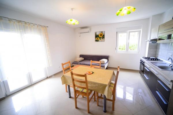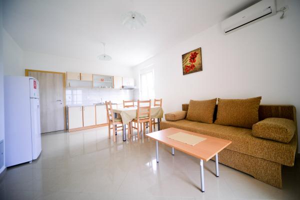 Az apartmanokkal rendelkező ház a tenger közvetlen közelében található. Békét és magánéletet biztosít. Minden emeleten két 60m²-es és 65m²-es apartman található. Egy hálószoba nagy franciaággyal (kényelmes 23 cm vastag matracok), konyha, nappali nagy ággyal és zuhanyzós fürdőszoba található. Mindennel fel vannak szerelve, ami egy modern apartmanhoz megkívánja, hogy a vendég a legkényelmesebb tartózkodást biztosítsa benne. A ház mögött őrzött fedett parkolóhely van minden jármű számára. A szabadtéri grillező mindenki számára elérhető. Kérjük, vegye fel velünk a kapcsolatot e-mailben, mert így gyorsan és részletesen tudunk minden információt megadni.