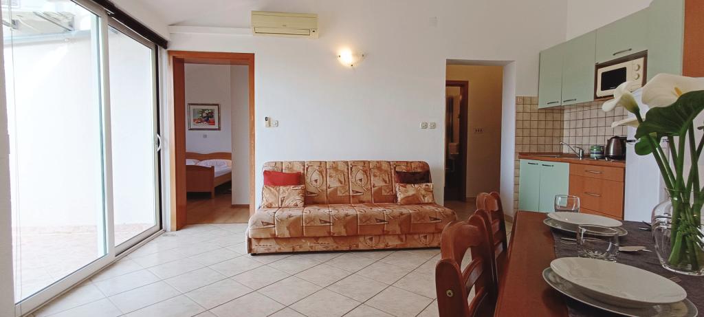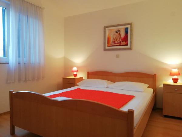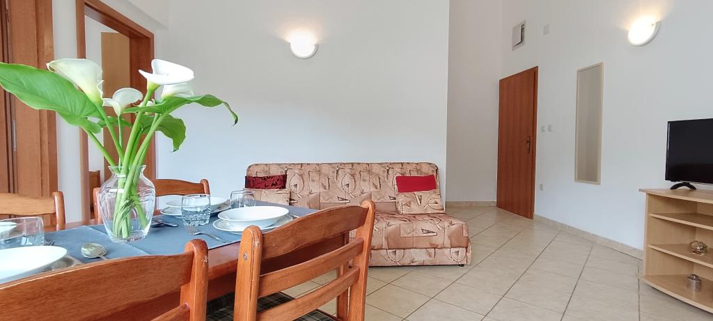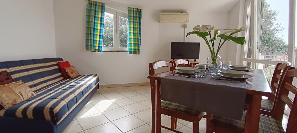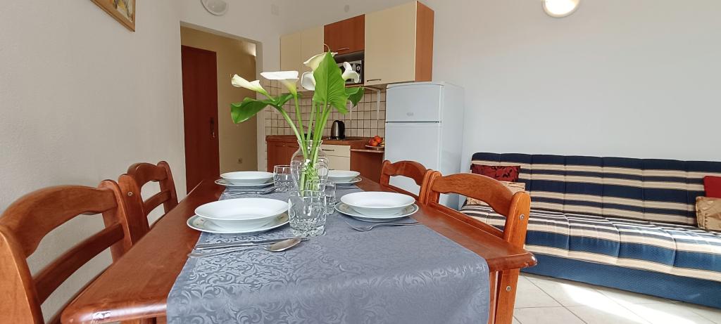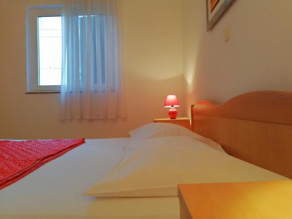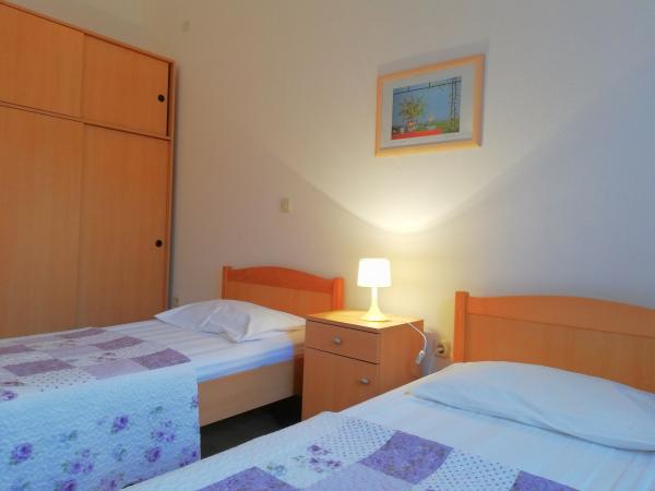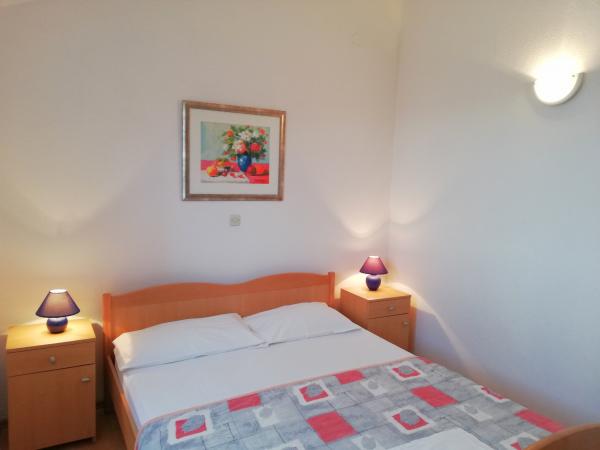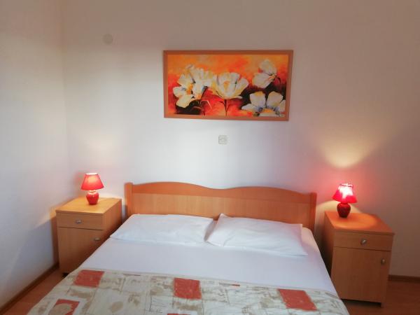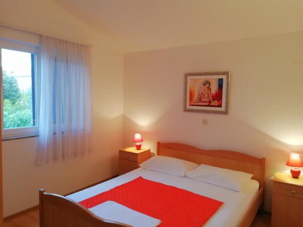 Korszerűen felszerelt apartmanok Pakoštan turisztikai övezetében. Az apartmanok 5-10 percnyi sétára találhatók a strandoktól és a városközponttól. A lakás közelében szupermarket és sportpályák találhatók.Az ingatlan 1600 m2-en parkosított udvarral, parkolóval és grillezővel várja vendégeit. Minden apartmanban van ágynemű és törölköző a vendégek számára. A konyha minden szükséges konyhai felszereléssel felszerelt. A nagyteremben vasalódeszka található. Az ár tartalmazza az idegenforgalmi adót, a légkondicionálást és a WiFi-t. Háziállatokat szívesen fogadunk. Háziállat ára 5 Eur/nap. Bejelentkezés 14 órától. Kijelentkezés 10 óráig.