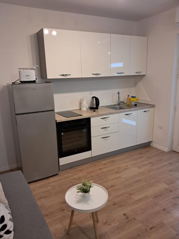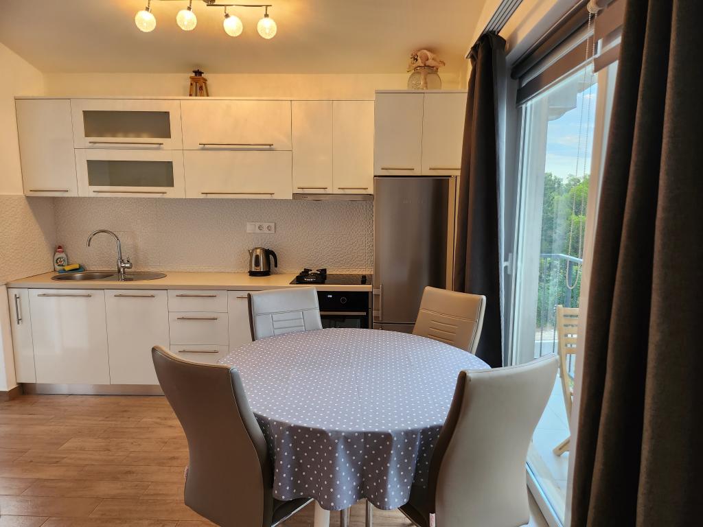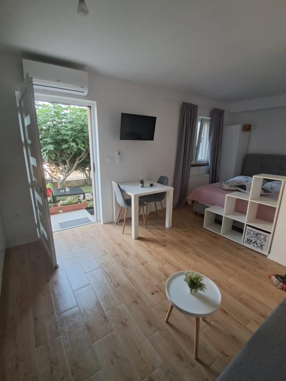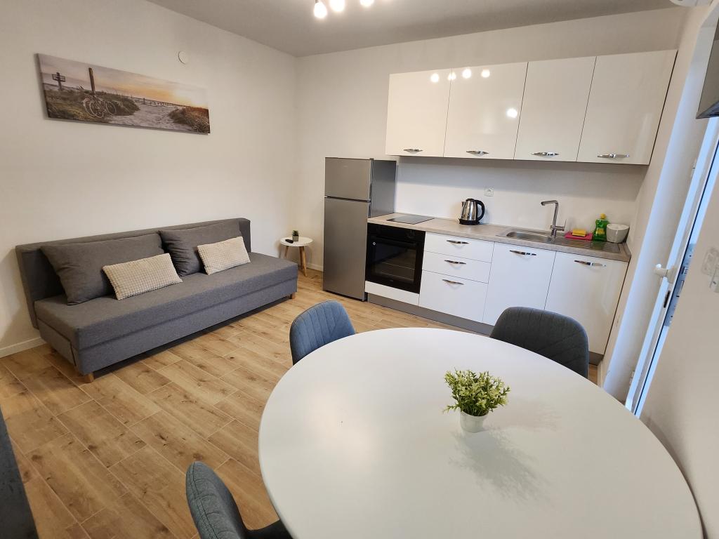 A lakás a főút mellett található, benzinkút és nagy bolt is található. A környék csendes, kellemes lakni, a közelben van a Vrana-tó és a tóra a lakásból rá lehet látni. Körülbelül 10 perces sétára található a városközponttól és a strandtól.