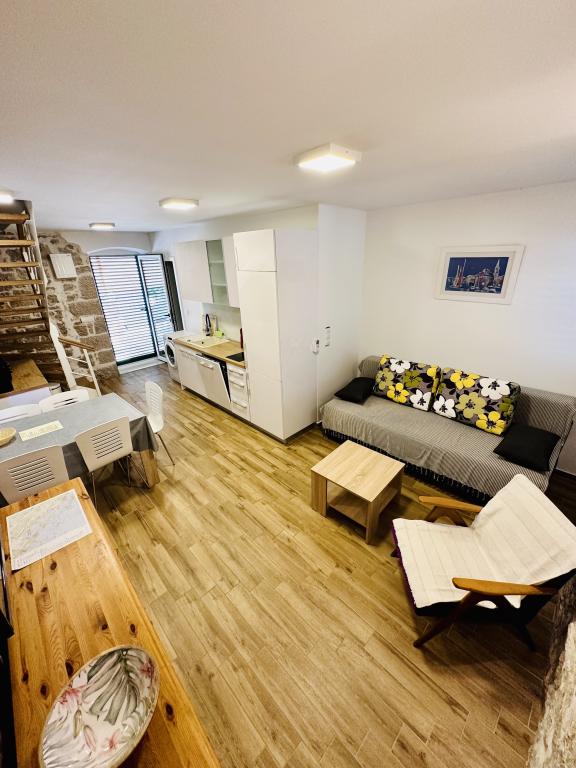 Gyönyörű őshonos kőház Pakostane központjában, minden kényelem közelében. A ház 2 db 4+2 fős (maximum max 8+4 fős) apartmanból áll, melyek teljesen felszereltek a tökéletes nyaraláshoz (légkondicionálás, WI-FI, satTV, parkoló, grill, kilátás a tengerre).