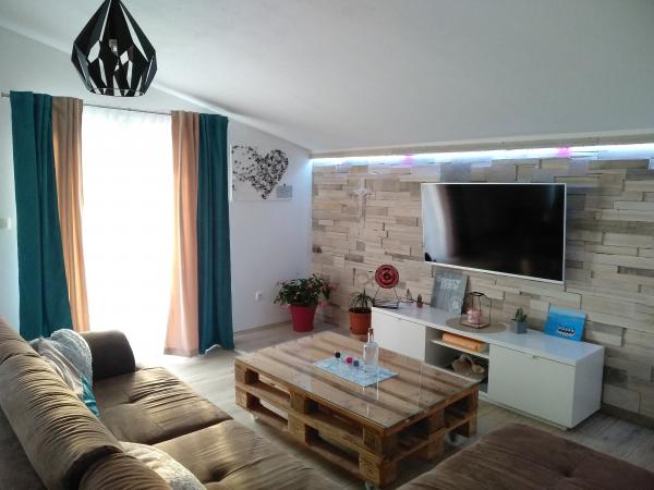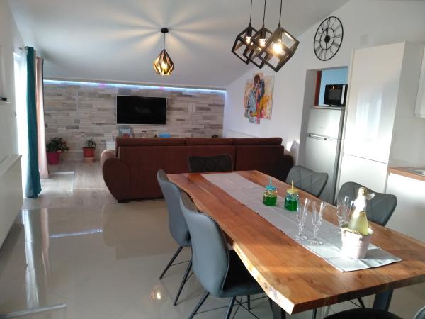 Családi ház, amelynek birtokában 7 apartman. Apartman A6 található a második emeleten az épület, ahhoz, hogy elférjen akár 8 fő. Ez három nagy hálószoba, egy nagy nappali, étkező és konyha, egy nagy fürdőszoba. Van két nagy teraszok. A lakás fel van szerelve légkondicionáló, TV, vezeték nélküli, mikrohullámú sütő. Mobilház MH5 alkalmas maximum 7 fő. Két hálószoba, nappali, konyha, két fürdőszoba, nagy terasz. Fel van szerelve légkondicionáló, TV, wifi. Parkolás a ház előtt. Apartman A5 alkalmas maximum 5 fő. Két hálószoba, étkező, konyha, egy fürdőszoba, terasz. wifi. A lakáshoz tartozik egy külön lehetőség Villa Jadranka. Apartmanok A3 és B3 található az első emeleten, a ház. Alkalmas marad három embert. Apartmanok A2 és B2 alkalmas 2 fő részére. Parkolni a Villa Jadranka. Közel pékségek, gyümölcstermesztők és éttermek