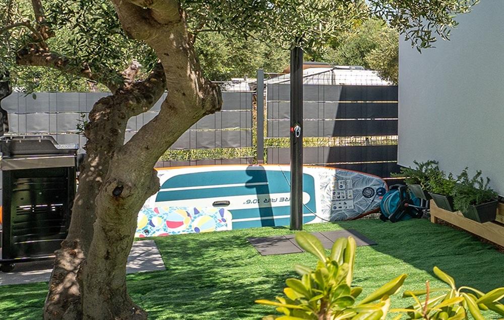 A vendégek rendelkezésére áll mosógép, mosogatógép, légkondicionáló, kültéri és beltéri hűtőszekrény, ventilátor a teraszon, TV a nappaliban és a teraszon. A házban két hálószoba található 160 cm széles ágyakkal. Az ágyak minőségi matracokkal, matracvédőkkel és szatén ágyneművel vannak felszerelve. A nappaliban egy kanapéágy található további egy fő számára. A konyha teljesen felszerelt edényekkel és konyhai gépekkel: kávéfőző, sütő, mikrohullámú sütő, kenyérpirító... Az udvaron a vendégek használhatják a grillezőt, napozóágyakat és két SUP deszkát. A házban nagy sebességű StarLink internet található.