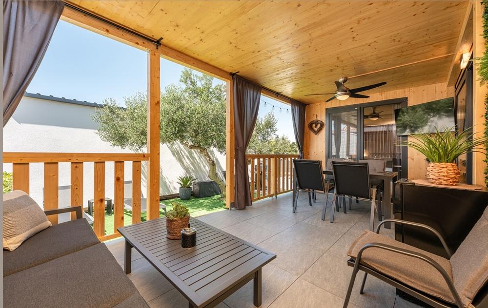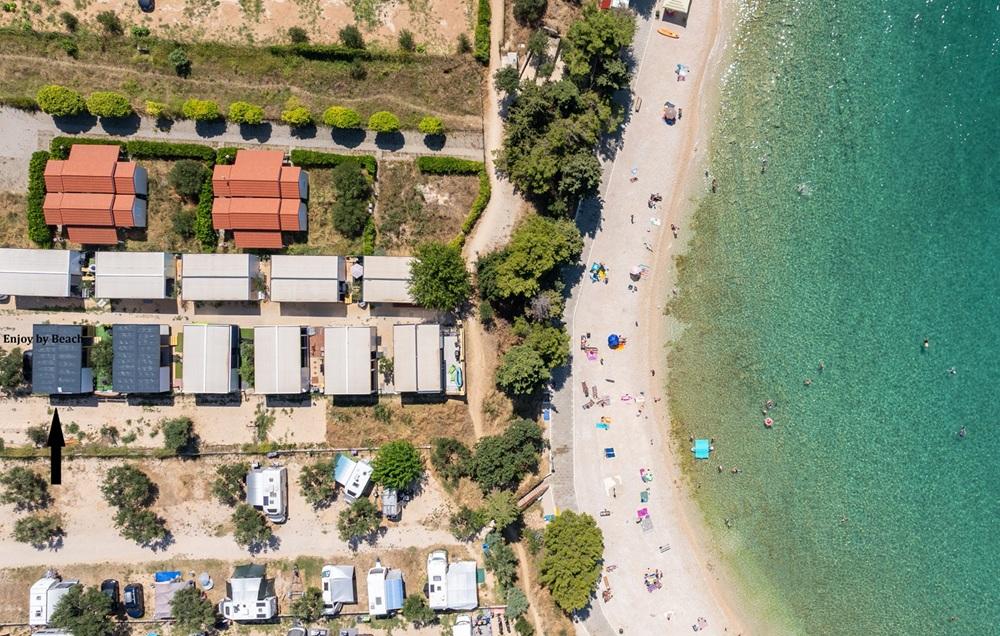 Kiváló minőségű "ENJOY BY BEACH" mobilház - a Janice strand mellett. Az "Enjoy by Beach" mobilház a 4 csillagos Skalinada kempingben található, mindössze 100 méterrel a Janice strand felett és 800 méterre Pakoštane központjától. A ház teljesen új és magas színvonalon felszerelt. Tartózkodása alatt a ház tulajdonosa minden igényét és kívánságát kielégíti.