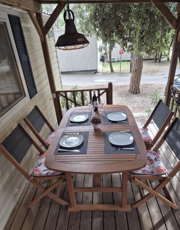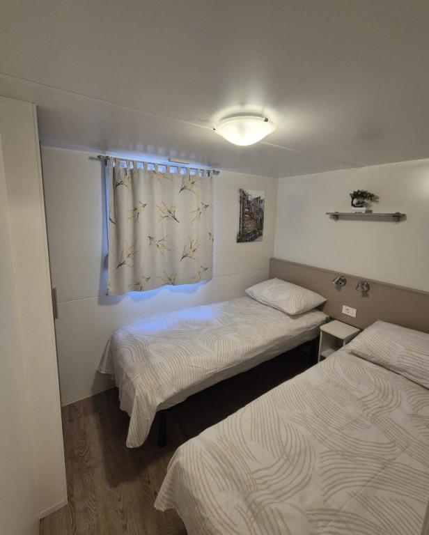 Kényelmes szállás: A Glamour Pakoštane mobilház két hálószobával, két fürdőszobával és tágas nappalival várja vendégeit Pakoštanéban. A szálláshelyen teljesen felszerelt konyha, légkondicionáló és ingyenes wifi is található. Szabadidős létesítmények: A vendégek élvezhetik a teraszt, a bárt és a gyermekmedencét. További szolgáltatások közé tartozik az étkező, a kerti bútorok és az ingyenes privát parkolás a helyszínen. Kiváló elhelyezkedés: A kemping 27 km-re található Zadar repülőterétől, néhány lépésre a Punta strandtól. A közelben található a Kornati kikötő és a Biogradi Örökségmúzeum, mindkettő 8 km-re. A környéken vitorlázási lehetőségek is vannak.