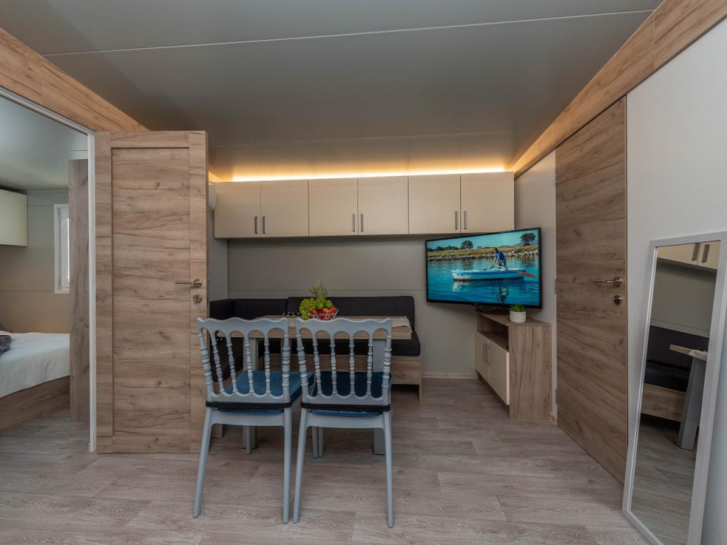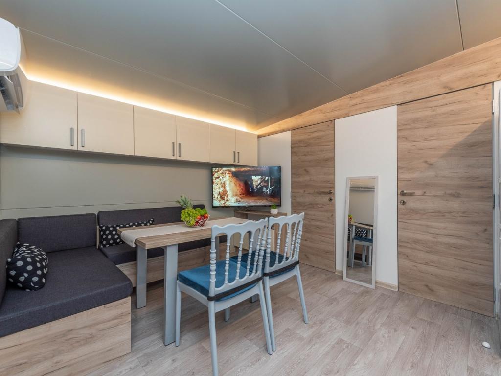 Az újonnan megnyílt kemping a Pakostane csendes részén ideális nyaraláshoz. A tenger közelében lévő hatalmas terepen tizenkét új, 2017/18-ban épült mobilházunk van. évben. Az érintetlen természet csendjében színpadként tartottuk a gyönyörű dalmát tenger, a nap és a szigetek nézését. A házakat olajfák veszik körül, amelyek fantasztikusnak tűnnek az éjszaka folyamán. Minden vendégház 24 m2-es tágas terasszal rendelkezik, amelyen egy étkezőasztal és egy pihenésre szolgáló sarok áll rendelkezésre. A ház belső terét felújították, és a mediterrán stílusban nem lesz kényelem és kikapcsolódás. A tábor 10 perc sétára van a központtól. Ideális kerékpáros csoportok számára is, a szálláshelyek nagy száma és a kerékpáros útvonalak közelében. Lehetőség vacsorák szervezésére csoportok számára.