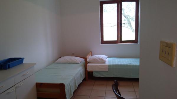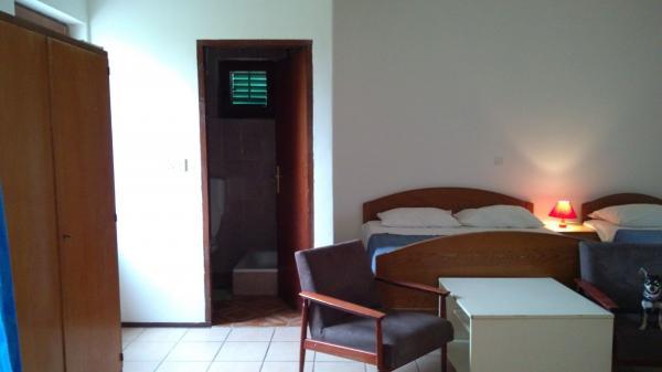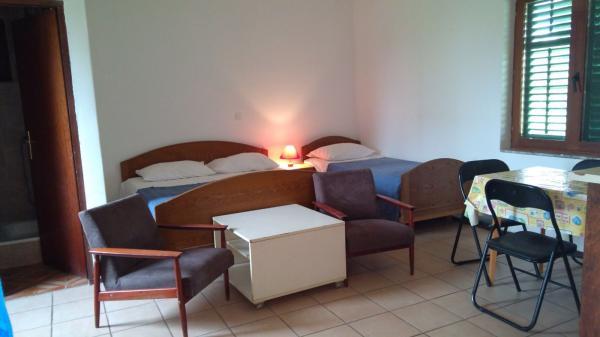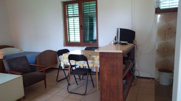 Családi ház, amelyben van egy berendezett apartman egy csendes környezetben. A ház terasszal és tágas udvarral rendelkezik, amely szabadtéri játékra és tartózkodásra alkalmas. Grillezési lehetőség. A strand 30 m-re fekszik a gyönyörű homokos strandtól, az ingatlan 5 perc alatt elérhető. gyalog a központtól.