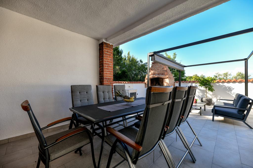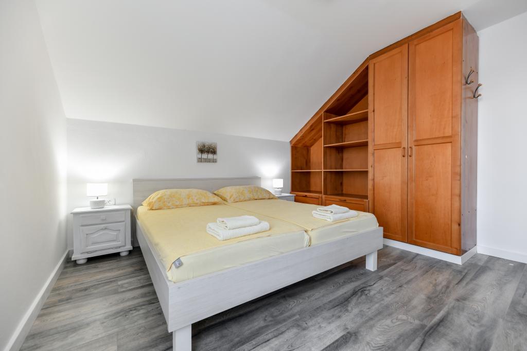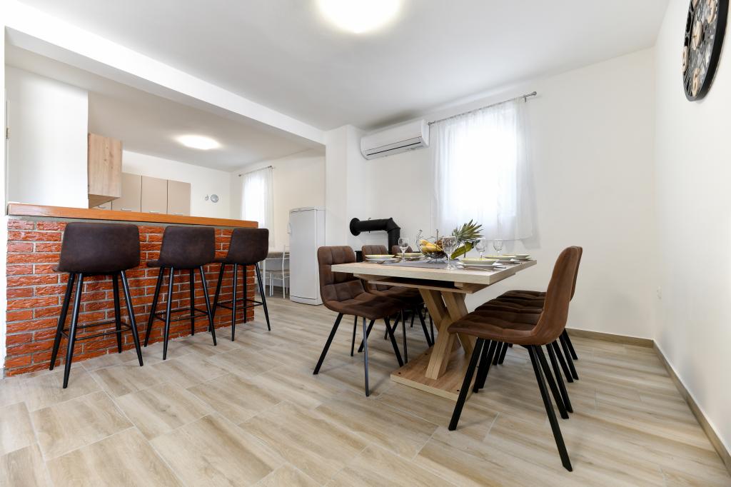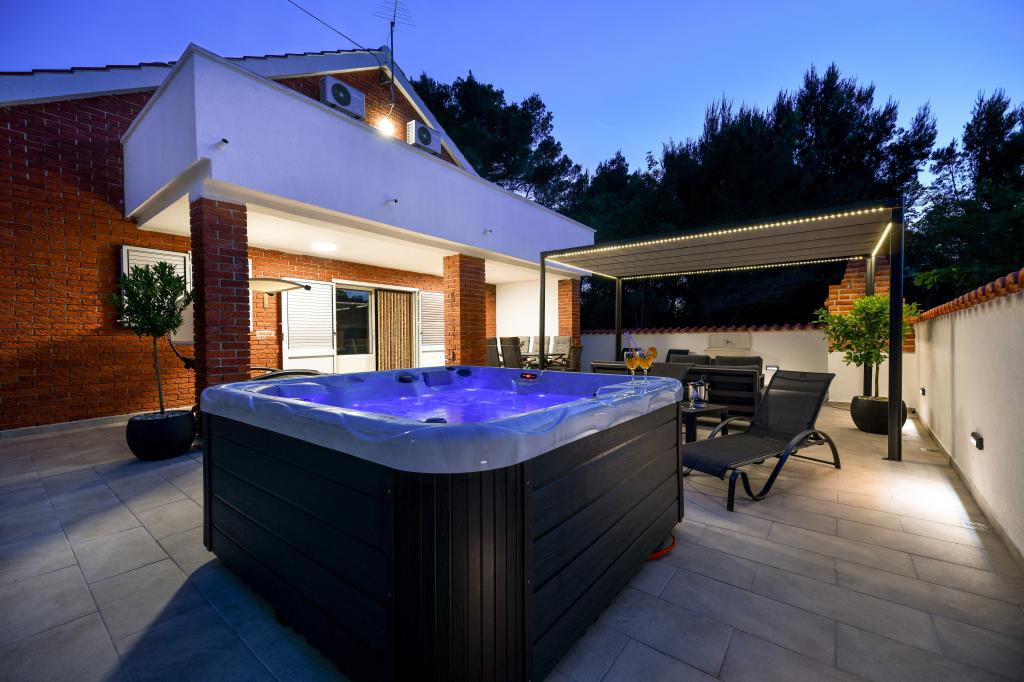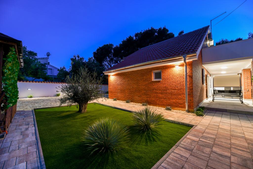A ház Pašman szigetén található, egy tipikus dalmát kisváros béke, csend és szépség oázisában. Három perc sétára a strandtól, öt perc a boltig. A létesítményben nagy szabadtéri terasz, grillező, nyugágyak, pihenőhinta és hidromasszázs kád található. A földszinten található egy nagy nappali konyhával, két fürdőszoba és három WC, valamint egy mosógép. Az első emeleten 4 hálószoba található, két szobából nyílik egy nagy tengerre néző terasz, egy 180x200-as franciaágy, a másik két szoba pedig egy 160x200-as franciaággyal és az erdőre néz. Az első emeleten egy WC is található. Kérésre kiságy is rendelkezésre áll. Az udvarban három parkolóhely, valamint kültéri zuhanyozási lehetőség biztosított. A ház 2023 májusában teljes körűen fel lett újítva. Lehetőség van 10 fős tartózkodásra is, ebben az esetben két fő részére egy telken lévő garzonlakásban, felár ellenében szállást biztosítunk. A stúdióapartmanban minden gépesített konyha, zuhanyzós fürdőszoba, TV, légkondicionáló és tengerre néző terasz található.
