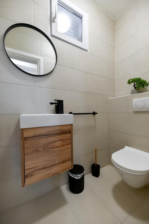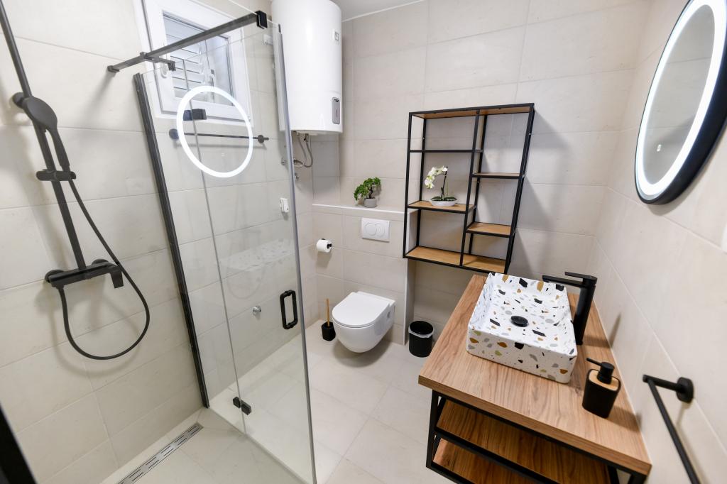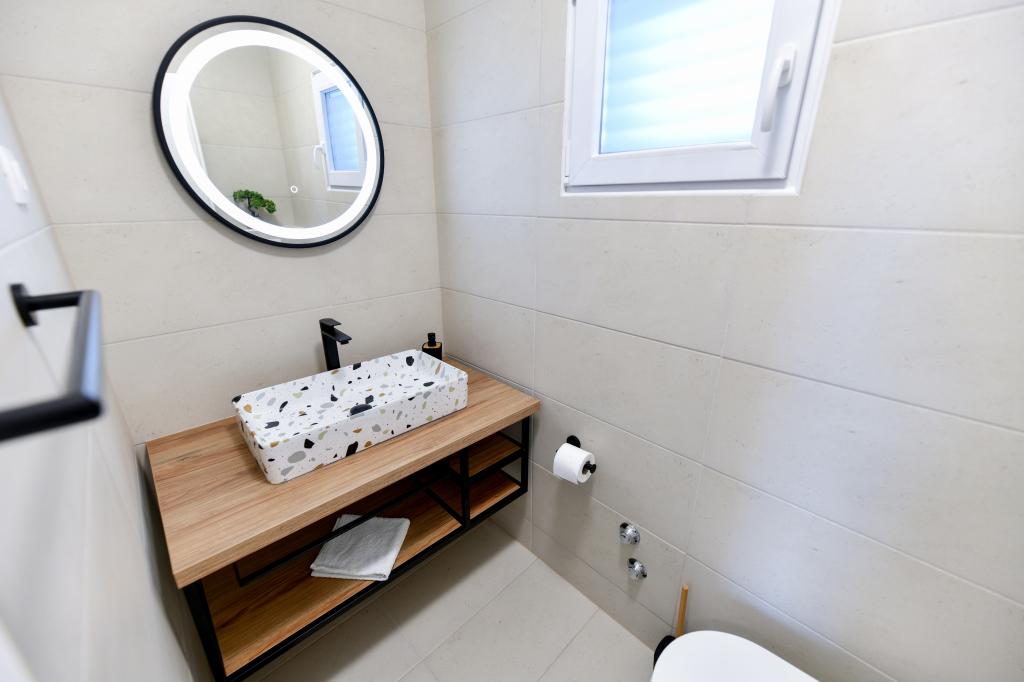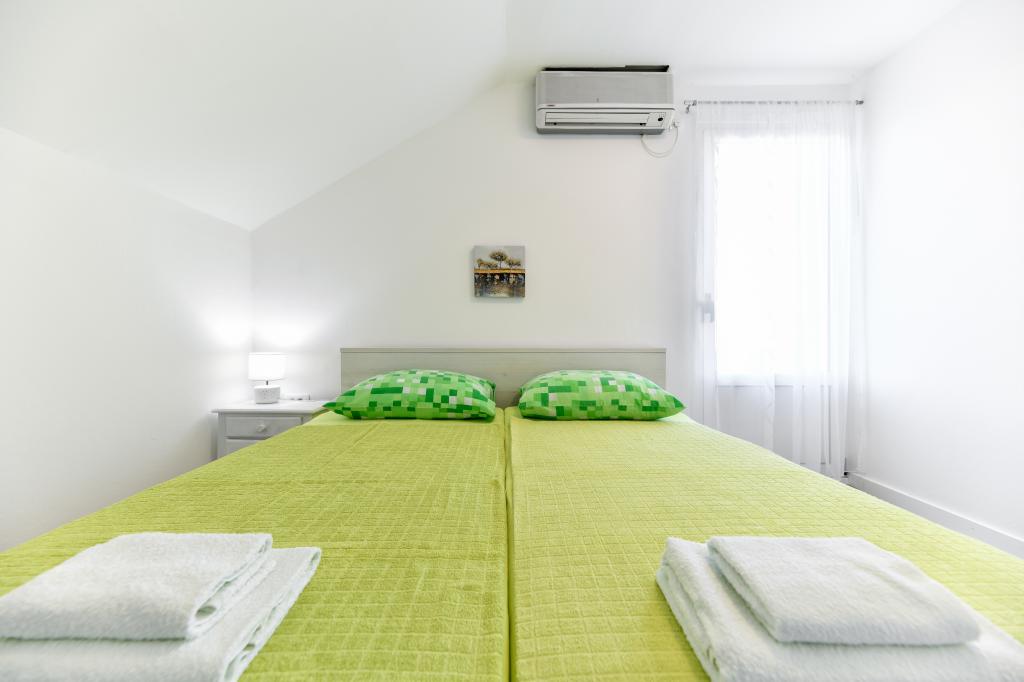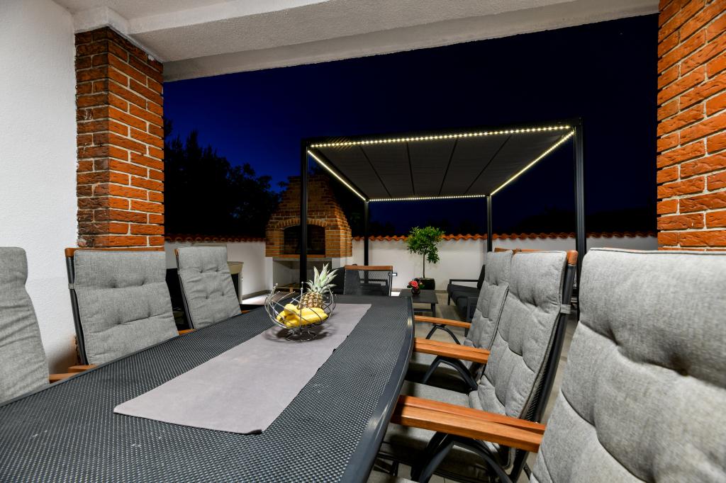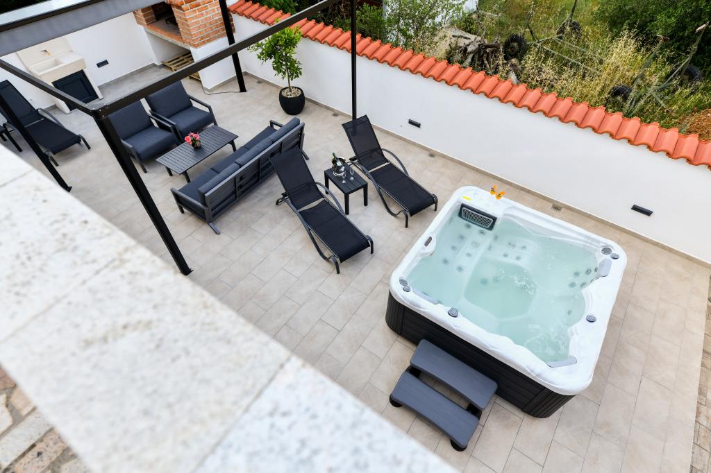A ház Pašman szigetén található, egy tipikus dalmát kisváros béke, csend és szépség oázisában. Három perc sétára a strandtól, öt perc a boltig. A létesítményben nagy szabadtéri terasz, grillező, nyugágyak, pihenőhinta és hidromasszázs kád található. A földszinten található egy nagy nappali konyhával, két fürdőszoba és három WC, valamint egy mosógép. Az első emeleten 4 hálószoba található, két szobából nyílik egy nagy tengerre néző terasz, egy 180x200-as franciaágy, a másik két szoba pedig egy 160x200-as franciaággyal és az erdőre néz. Az első emeleten egy WC is található. Kérésre kiságy is rendelkezésre áll. Az udvarban három parkolóhely, valamint kültéri zuhanyozási lehetőség biztosított. A ház 2023 májusában teljes körűen fel lett újítva. Lehetőség van 10 fős tartózkodásra is, ebben az esetben két fő részére egy telken lévő garzonlakásban, felár ellenében szállást biztosítunk. A stúdióapartmanban minden gépesített konyha, zuhanyzós fürdőszoba, TV, légkondicionáló és tengerre néző terasz található.
