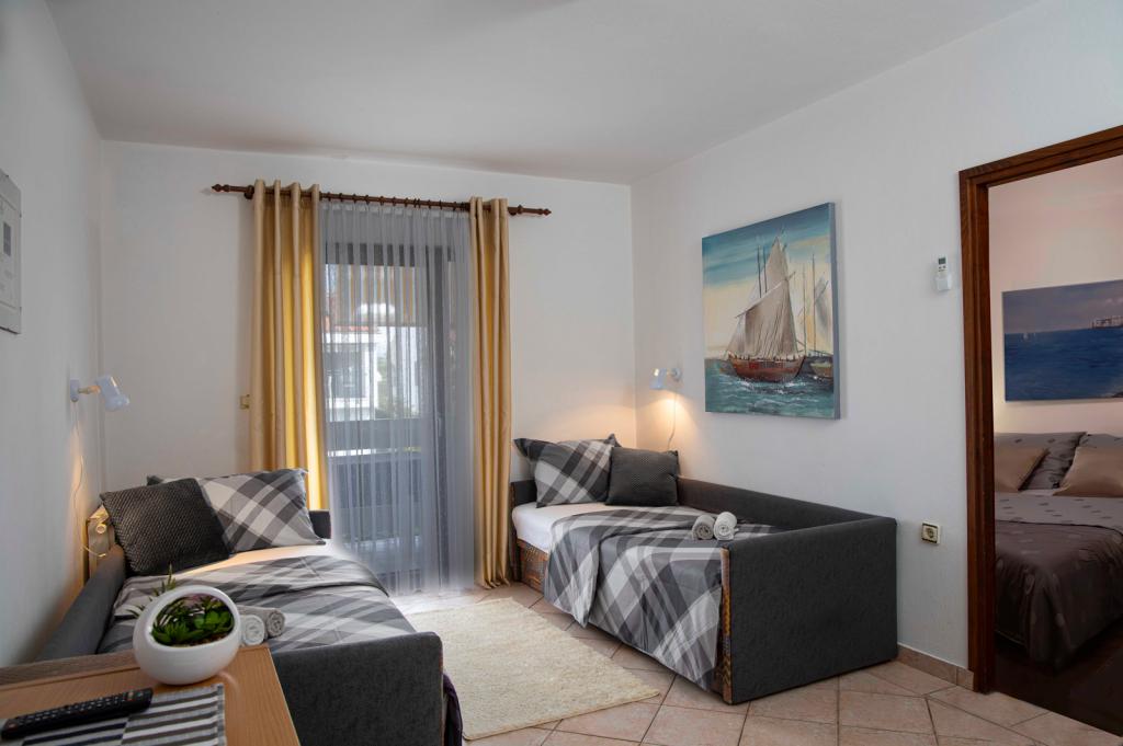 Az apartmanok rendezettek és tiszták, és mindennel fel vannak szerelve, ami egy rövid vagy hosszabb tartózkodáshoz szükséges. A tulajdonos barátságos, elérhető és mindenben szívesen segít. A strandok szó szerint karnyújtásnyira vannak, egy perc séta (kisgyerekkel), bármerre is megy. Szinte mindig lehet hűsítőt találni, a gyerekeknek pedig van egy finom homokos, sekély tengeri strand is, ahol a nap bármely szakában van hely. A helyen van elég kávézó, étterem, pizzéria, ajándékbolt... Autó szó szerint felesleges (és az apartman melletti árnyékban lefoglalt parkolóban lehet hagyni), mert minden pár perc sétával elérhető. Bármilyen ajánlat egy lakásra.