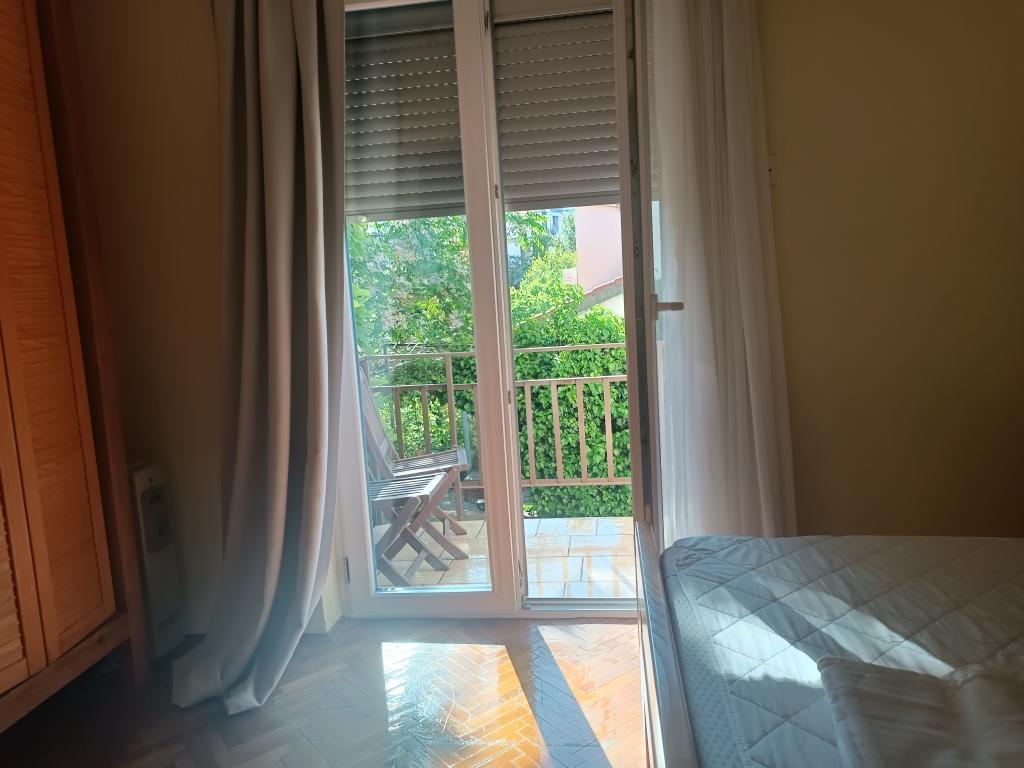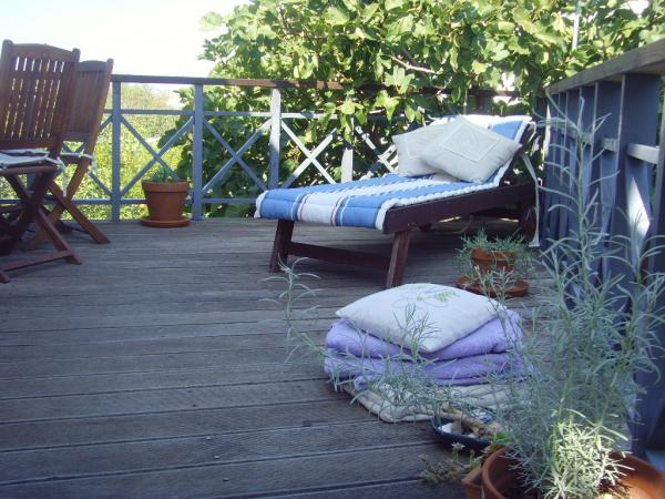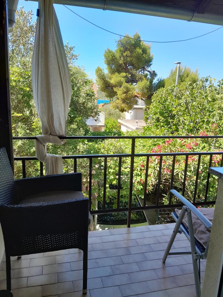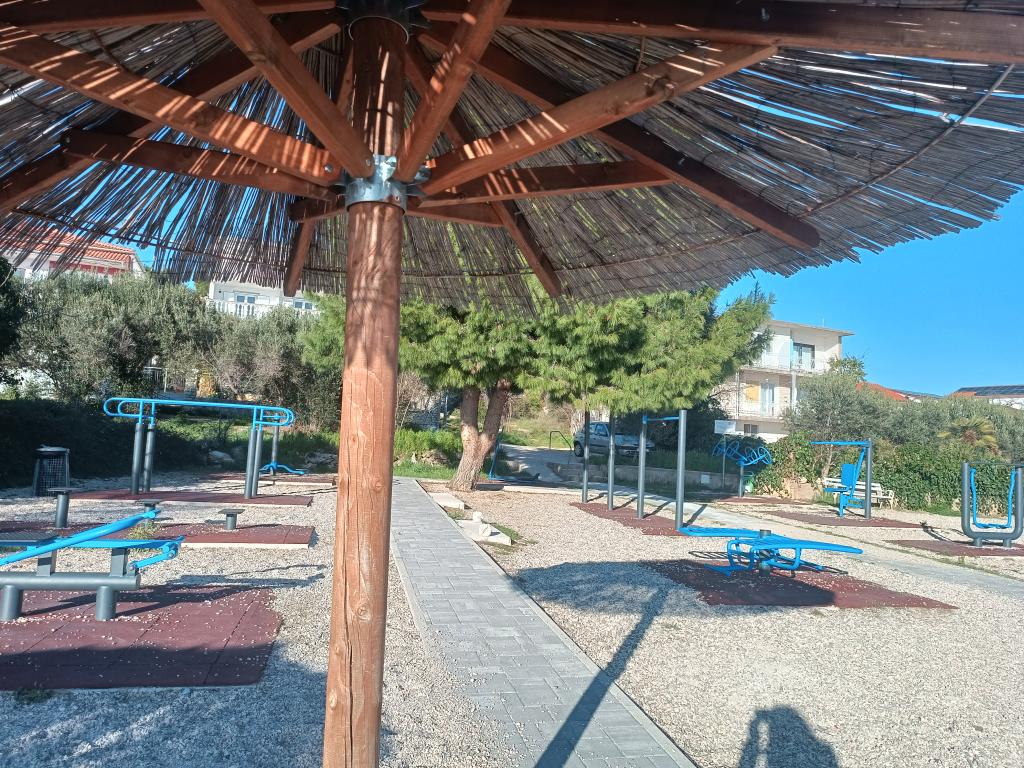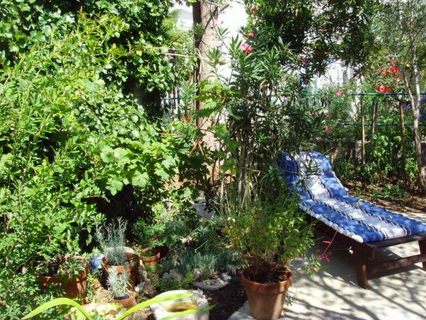 A Log Inn apartman egy kétlakásos ház első emeletén található, egy csendes, családoknak megfelelő sikátorban. A ház árnyékos kertjét olajfák, fügefák és fenyőfák tarkítják, az udvarban pedig parkolóhely található. A városközpont üzleteivel, pékségeivel, cukrászdáival, kávézóival és éttermeivel 10 perces sétára található, az első kavicsos strand pedig mindössze 5-10 perces sétára található. A Log Inn kellemes szálláshely bármilyen időjárás esetén, tágas, különálló szobával és játékokkal, képeskönyvekkel felszerelt nappalival. Jól felszerelt (edények, vízforraló, kávéfőző, max-tv, wifi, légkondicionáló), a nappaliban pedig a tavaszi estéken a vastag kályha tüze mellett pihenhetünk. A kerti bútorokkal ellátott terasz kellemes, a vendégek szívesen reggeliznek rajta, napoznak vagy élvezik az estét. A stúdió kisebb és kisebb konyhasarokkal rendelkezik, de a kertnek köszönhetően még a nyári melegben is kellemes. Mindkét apartman légkondicionálóval és fűtéssel rendelkezik. Szezonon kívül kedvezményes árakon és havi rendszerességgel bérelhetők.