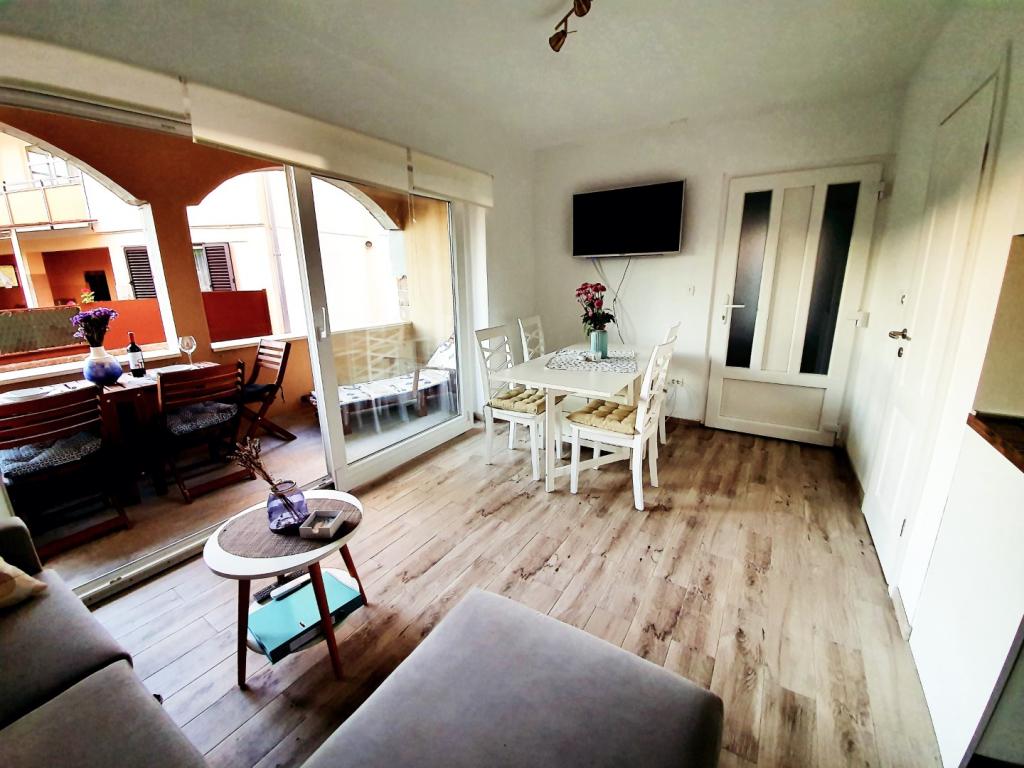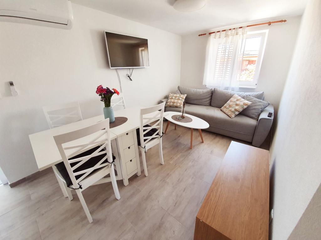 Jól felszerelt apartman. Nagy hűtőszekrény, mosogatógép, sütő és mikrohullámú sütő + minden, amire szüksége van a konyhában. Kényelmes ágyak, tiszta és rendezett. A házigazdák segítőkészek és nagyon kedvesek. Nagyszerű kapcsolattartás! Békés környezet és finom füge a keze ügyében. Üdvözlő meglepetés a vendégeknek. Ideális kiindulópont Zadarba, Trogirba és Vodicébe, vagy Kornati, Krka és más utazásokhoz. Ajánlom a gyönyörű Murter -szigetet és a Riva Podvrške csodálatos strandját, 25 percnyi autóútra. Nagyon ajánlom!