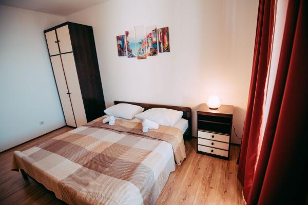 Teljesen felszerelt és berendezett apartman házban, a tenger mellett. A létesítmény található, 5 percre a városközponttól, éttermek, kávézók. A strand homokos és alkalmas a kisgyermekek. Az összes apartman fenntartott parkoló. Az ár tartalmazza az adókat, a légkondicionáló, wifi.