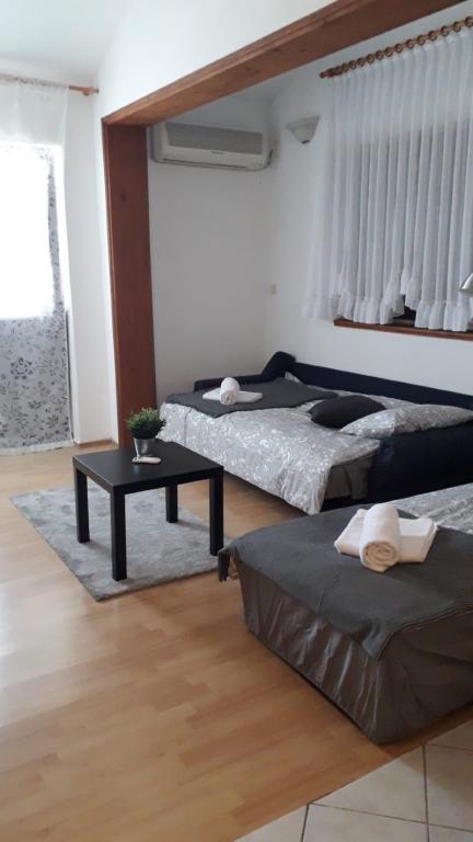 Pirovacon 2 lakás kiadó. Egy gyönyörű fenyőerdő közelében találhatók, körülbelül 900 méterre a központtól és a strandtól. Nincs nagy ingadozás a létszámban, mert mindössze 2 lakást bérelnek. Ideális hely ezekre az időkre. Minden apartmanhoz saját terasz, klíma, TV, parkoló, internet, ágynemű és minden, ami egy nyaraláshoz kell. A hely csendes és ideális hely a kikapcsolódásra, a központ pedig tíz perc sétára van