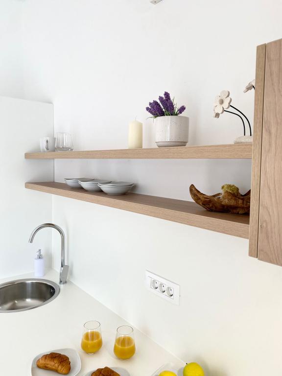 A frissen felújított apartmanok, bár a strandtól és a városközponttól pár percnyi sétára találhatók, a nagy teraszok előtti fenyőerdő nyugalmat, a tenger illatát és a tücskök hangját nyújtja. A belső térben jelen lévő természetes és levegős anyagok hozzájárulnak a megnyugtató hangulathoz. A tér egyszerűsége, a fa és a kötés kellemessé teszi a teret. Ugyanakkor az apartmanok modern berendezésűek, lehetővé téve a vendég számára a teljes kikapcsolódást és a valódi pihenés érzését.