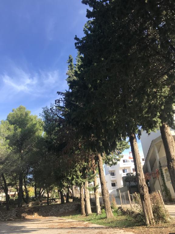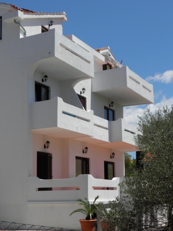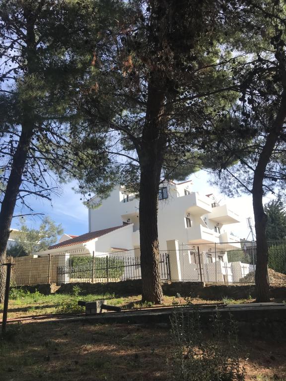 Az apartmanok egy fenyőerdő és a fő strand mellett találhatók. A fő strand 50 méterre van a ház előtt. A városközpont néhány percnyi sétára található. A nagy teraszokról a tengerre néző, fénnyel és napsütéssel teli tér tágassága és egyszerűsége pozitív energiát és kikapcsolódást biztosít. Minden apartman légkondicionált. Minden emeleten két apartman található, és mindegyik külön külső bejárattal rendelkezik. A négyszemélyes apartmanban két külön hálószoba (ágyak 160x200), egy nagy nappali konyhával és egy fürdőszoba található. A nappaliban szükség esetén ággyá alakítható kanapé (120x200). A két fős apartmanokban külön hálószoba (ágy 160x200), nappali konyhával és fürdőszoba található. A stúdió apartman a ház földszintjén található, az emeleten egy hálószoba (ágy 140x200) A földszinten található egy konyha, egy fürdőszoba és egy nagy terasz.