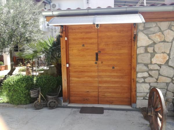 Apartmanok a helység csendes részén, zsákutcában. Őrzött parkoló, grill, Wi-Fi. Az apartmanok 5 perc sétára találhatók a központtól, ahol üzletek, éttermek, kávézók, klinika és 2 perc a strand. A földszinti, 4 fős apartmanhoz egész napos nagy napozóterasz tartozik, míg a stúdióapartman az emeleten található és kis erkélyes. A 2-es apartman a földszinten található, és saját terasszal rendelkezik.