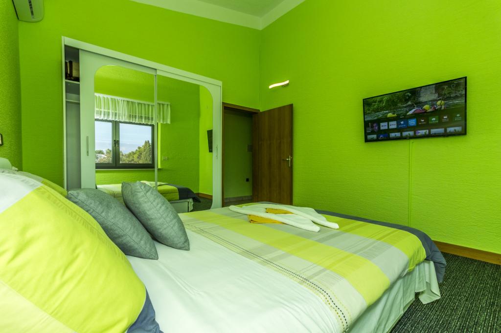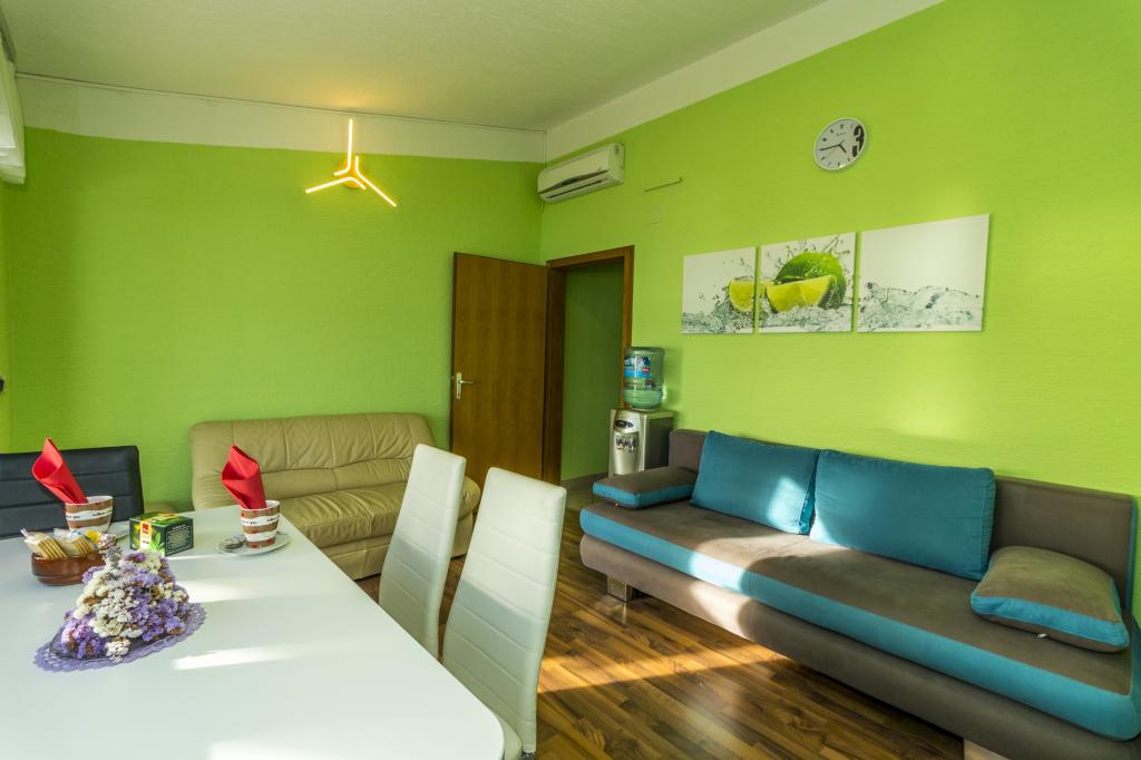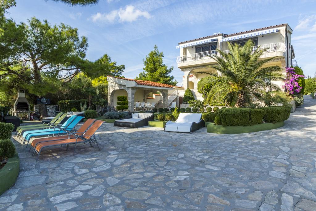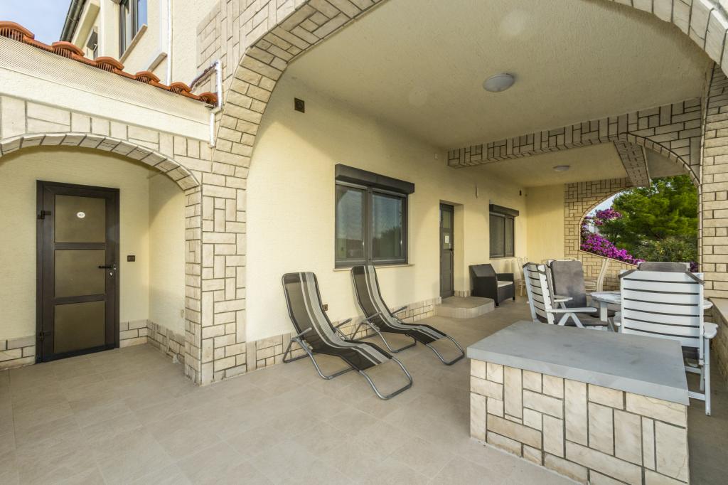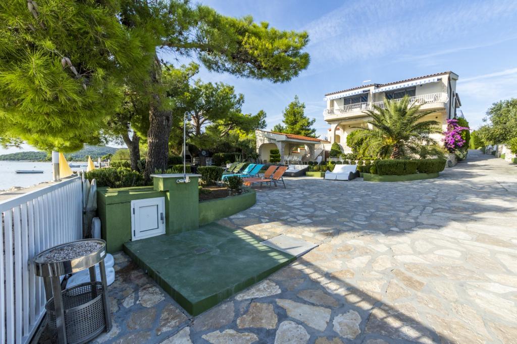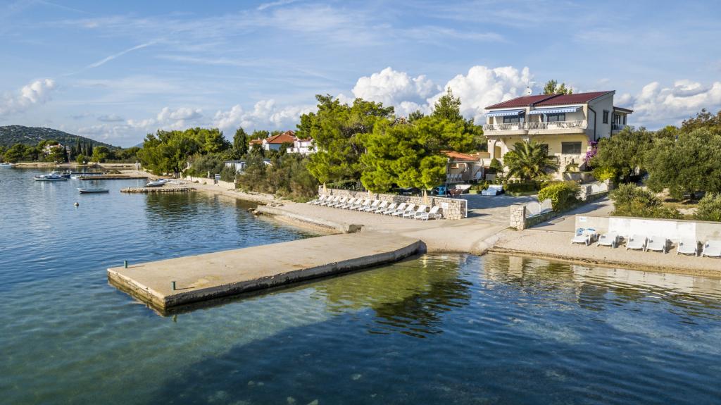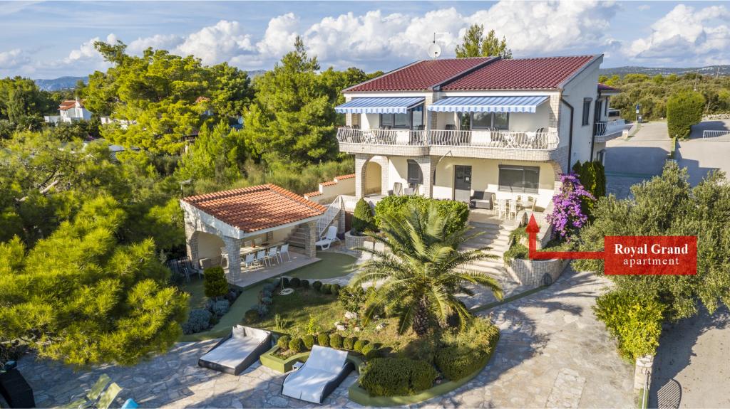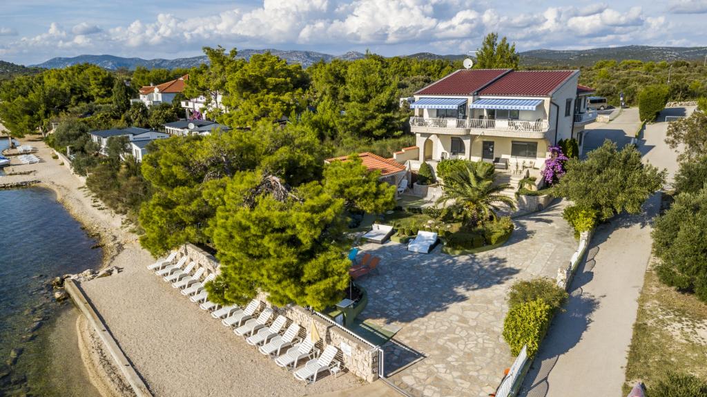 Villa Punta Royal található a tenger mellett, egy csendes öböl és saját kavicsos strand. A tenger sekély és mélyül, amikor elmúlik a parttól, mely kiválóan alkalmas a kisgyermekek. Az első a Villa egy mediterrán kertben, ahol élvezheti a varázsa a Dalmácia és az Adriai-tenger. Minden egy helyen, akkor nem kell aggódnia a tárolást a holmiját, hogy menjen a strandra, mert a lakás mindössze 15 méterre a strandtól, amely előtt a Villa. A vezeték nélküli internet ingyenes, és az egész Villa és az egész part. A parkolás mellett a Villa és ingyenes minden kedves vendégünknek. Napozóágyak és napernyők a mediterrán kertben és a strandon biztosítunk minden kedves vendégünknek és ingyenes. Az apartmanok modern, teljesen felszerelt családi szállás. Mi található a közepén az Adria partján, hogy a helyi látnivalók Dalmácia közel hozzánk. Élvezze a nyaralás, míg te Villa Punta Royal, valaki mindig elérhető a nap 24 órájában.