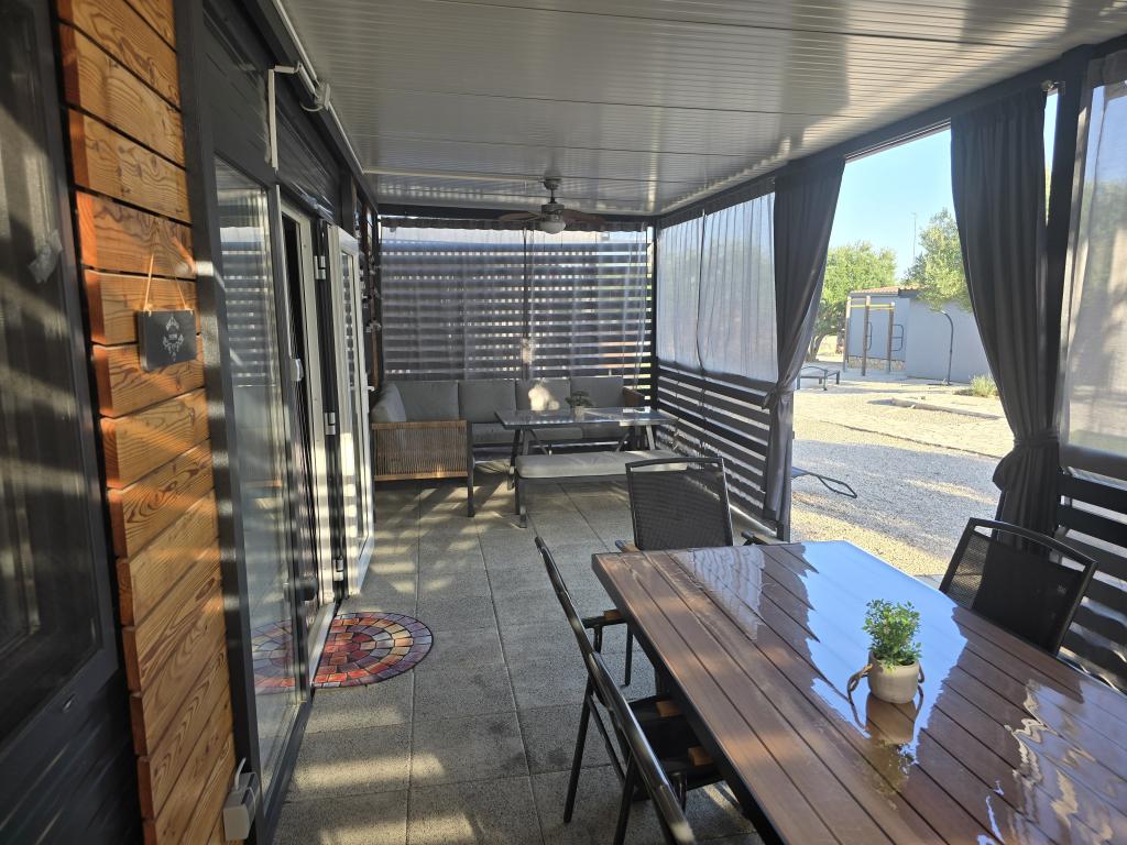 Mobile Home Maslina – Az Ön békés oázisa a tengerparton. Üdvözöljük a Mobile Home Maslinában, egy modern berendezésű mobilházban, Pirovac csendes részén, mindössze 200 méterre a strandtól. A ház maximum 5 fő befogadására alkalmas, két hálószobával, összesen 4 ággyal, egy nappalival kihúzható kanapéval, egy felszerelt konyhával és fürdőszobával rendelkezik. Élvezze a medencére néző nagy, fedett teraszt – tökéletes reggeli kávéhoz vagy esti pihenéshez. A vendégek számára parkolóhely is rendelkezésre áll. A Mobile Home Maslina ideális családi nyaraláshoz, a nyugalomhoz, a természethez és a tenger közelségéhez. Tapasztalja meg Dalmácia vendégszeretetét, és foglalja le nyaralását még ma!