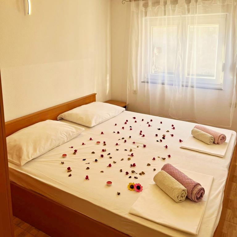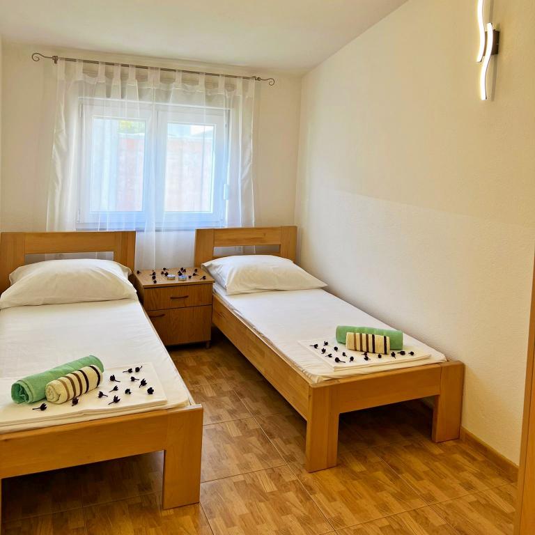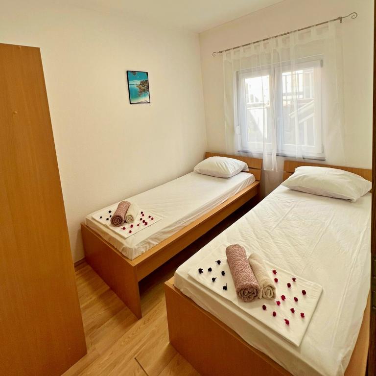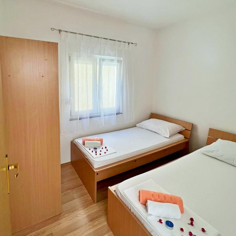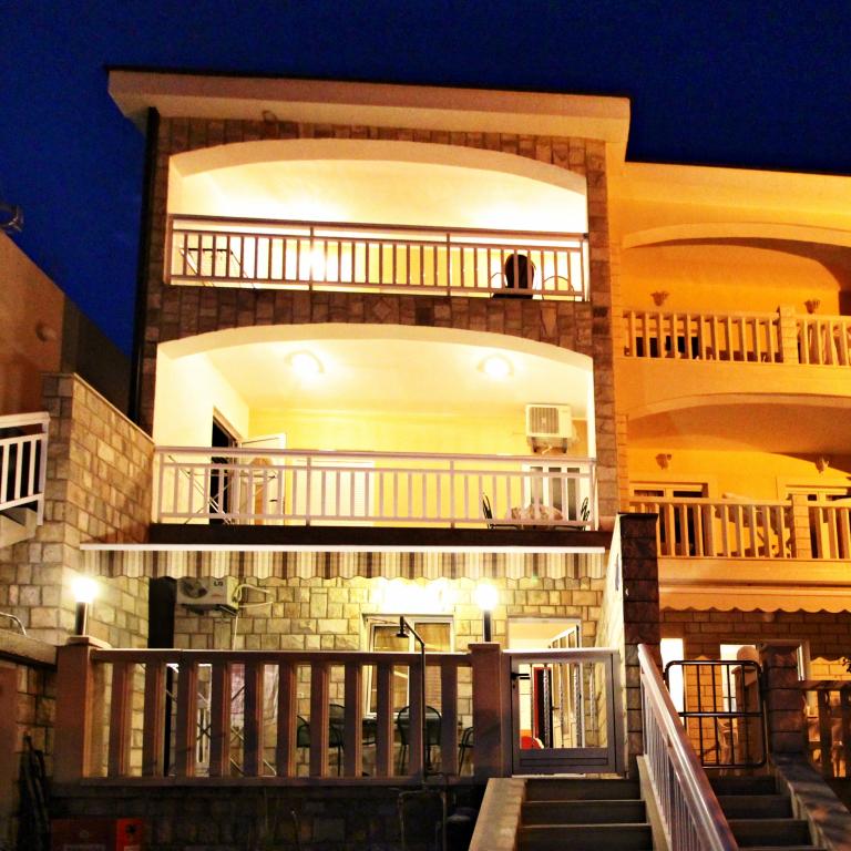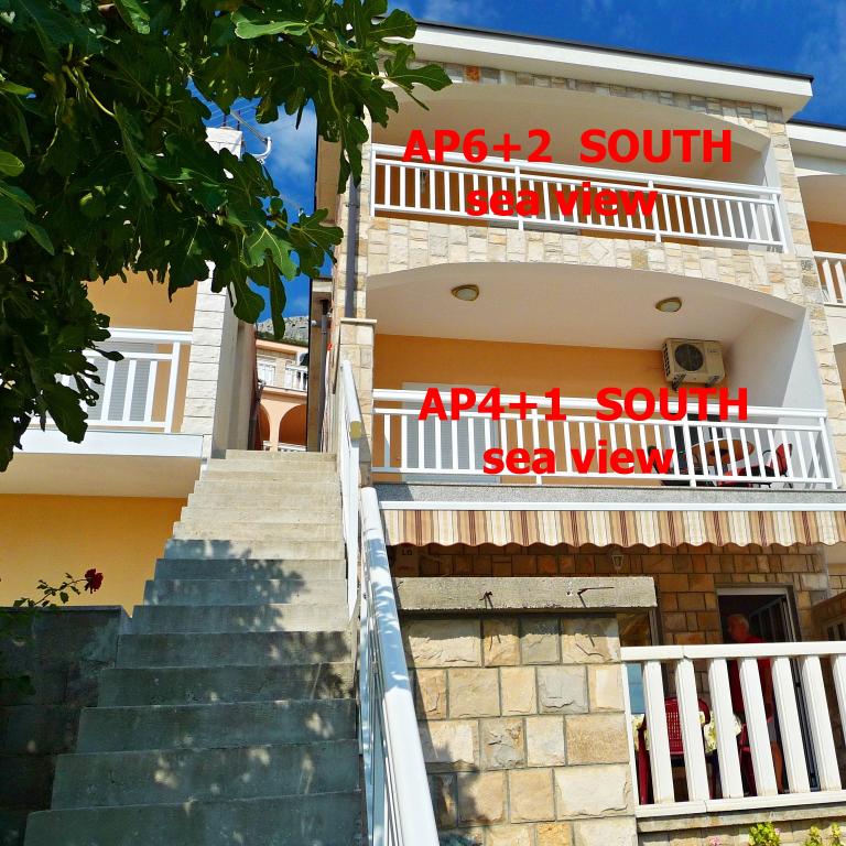 Három apartmannal rendelkezünk: >> A6+2 APARTMAN a második emeleten - 3 hálószoba, 1 nappali és konyha étkezővel, 1 fürdőszoba WC-vel, 1 WC, nagy erkély gyönyörű kilátással a tengerre! ! Légkondicionáló, mosógép, mosogatógép, mikrohullámú sütő, wifi internet. >> A4+1 APARTMAN az első emeleten - 2 hálószoba, 1 nappali és konyha étkezővel, 1 fürdőszoba WC-vel, nagy erkély gyönyörű kilátással a tengerre! ! Légkondicionáló, mosógép, mosogatógép, mikrohullámú sütő, wifi internet. >> A4+1 APARTMAN az első emeleten - 2 hálószoba, 1 nappali és konyha étkezővel, 1 fürdőszoba WC-vel, terasz tengerre néző kilátással. Légkondicionáló, mosógép, mosogatógép, mikrohullámú sütő, wifi internet.
