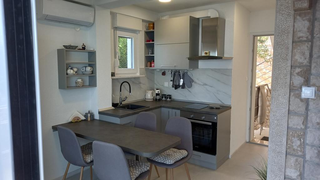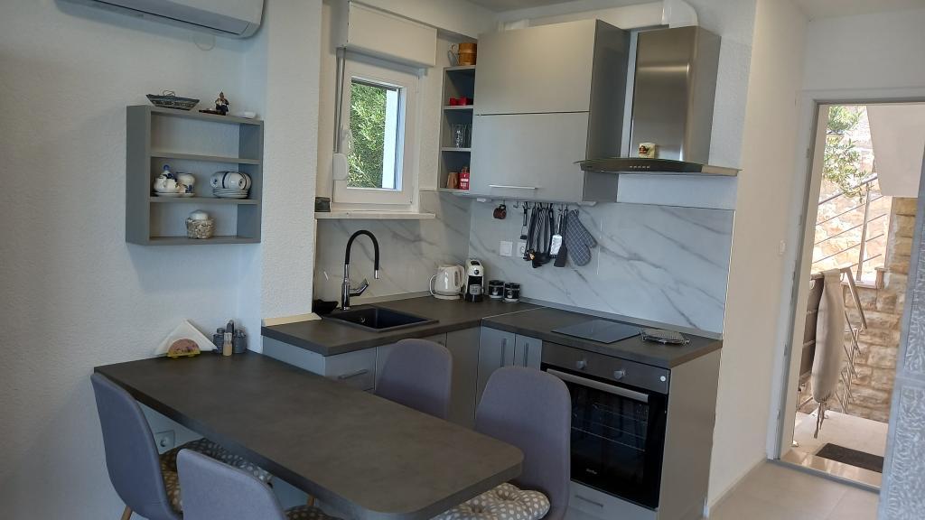 Szép, csendes hely. Lakás teljesen felszerelt, hiányzik csak mosógép. Egyébként mindent, amire vágyhat. Kenyérpirító, kávéfőző, sajtó, rengeteg edény, tálak, poharak, edények és serpenyők a mindennapi főzéshez. Törülközők, törlőkendők és papír, táskák a kosárban csak álom. Nagy hűtőszekrény fagyasztóval. Légkondicionáló. Hozzáférés a grillhez a tulajdonos megállapodása alapján, bármikor. Mindig készített fa az egész grillhez. Tulajdonosok segítőkész, kedves, barátságosak, a kommunikáció tökéletesen jó, aki beszélni akar. Mrs. tulajdonostól ízletes házi készítésű sós keksz (a receptet is átvettük) és az édes Bosenska specialitás. Javasoljuk továbbá a Lončar család pincészete borát, különösen a vörösbort :-). A tulajdonosok a terasz bővítését tervezik, amely újabb bónusz lesz. A strandhoz való hozzáférés, amint azt az alábbiakban már leírtuk, valóban hátrányos helyzetű, főleg ha meleg van, és a tengerpartra szállítja a dolgokat. De a strand gyönyörű, tiszta, szuper snorkeling, vízbe ugrik, csónakok. Mindent a tengerparton hagytunk egyik napról a másikra, és soha nem veszítettünk el semmit. Köszönöm, az elmúlt 6 év legszebb apartmanja volt. Minden évben más helyre megyünk, de minden bizonnyal visszatérünk ide.